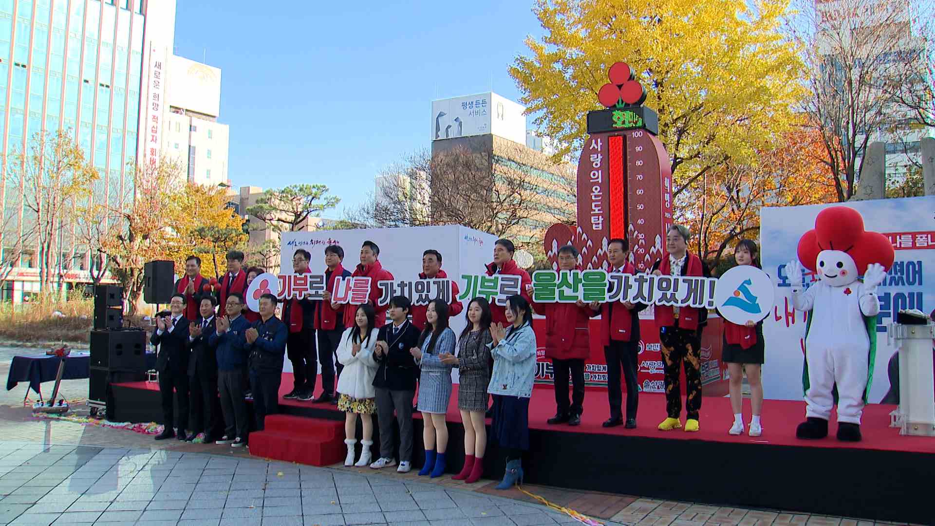 ◀ 앵 커 ▶ 울산사랑의열매 '희망 2025 나눔캠페인'이 오늘(12/2)부터 본격적인 모금활동에 들어갔습니다. 얼어붙은 지역 경기 상황을 감안해 목표액을 지난해보다 줄였다는데, 개인 기부 참여율이 100도 달성의 열쇠가 될 것으로 보입니다. 이용주 기자. ◀ 리포트 ▶ 연말 모금 활동의 시작을 알리는 사랑의 온도탑이 불을 ...
