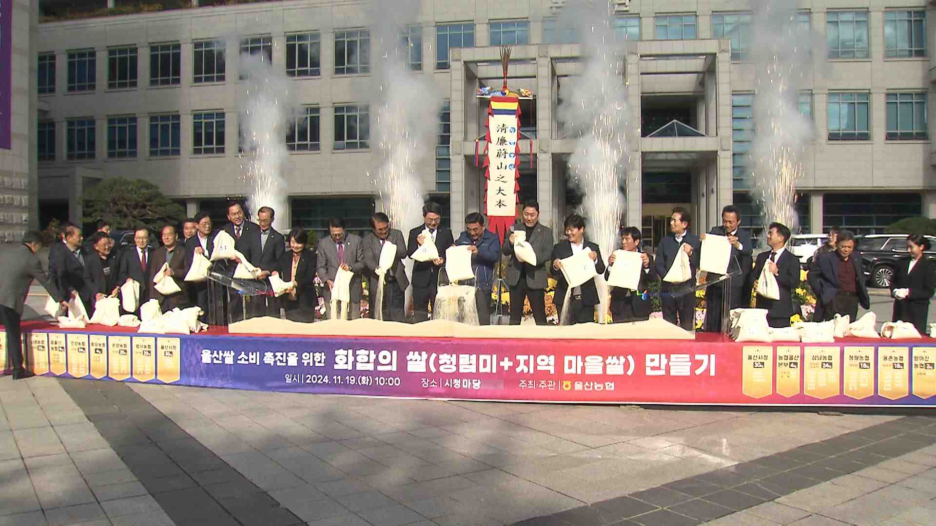 농협중앙회 울산본부는 울산시청 광장에서 울산 쌀 소비 촉진을 위한 화합의 쌀 만들기 행사를 열었습니다. 울산시청 논 정원에서 재배한 쌀과 울산 지역 118개 마을의 쌀을 섞은 화합의 쌀은 떡으로 만들어 시민들과 나눌 예정입니다. 한편 울산석유화학단지협의회는 청량농협과 약정을 체결하고 2억 6천만 원 상당의 청량...