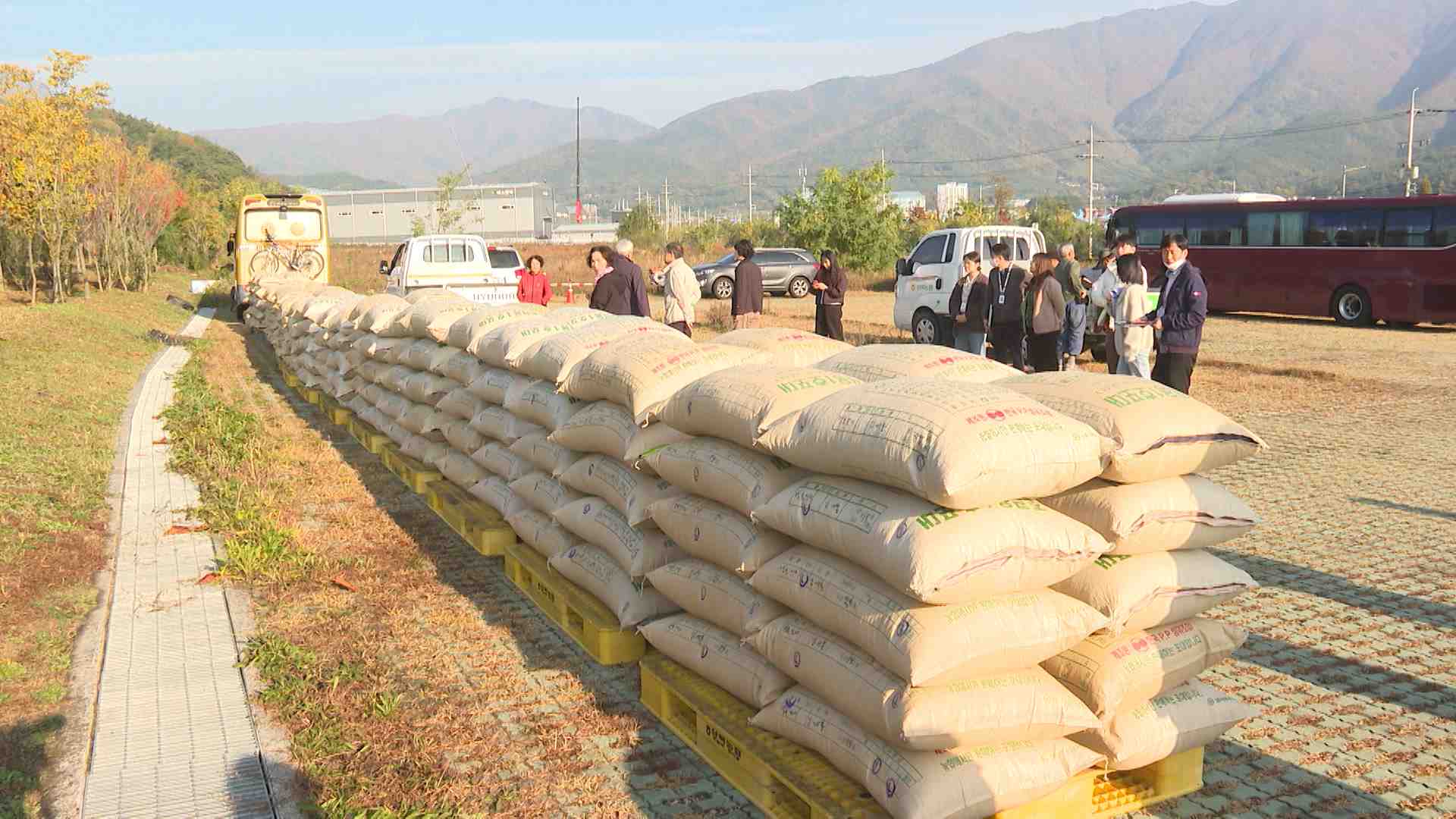 울주군은 오늘(11/12) 울주군 상북면 길천산단 주차장에서 2024년산 공공비축미곡 건조벼 첫 매입 행사를 가졌습니다. 올해 매입 물량은 지난해보다 2만 4천여 포 증가한, 5만 6천여 포대입니다. 울주군은 오늘 상북과 서생을 시작으로 22일까지 읍면을 돌며 매입 행사를 가질 계획입니다.