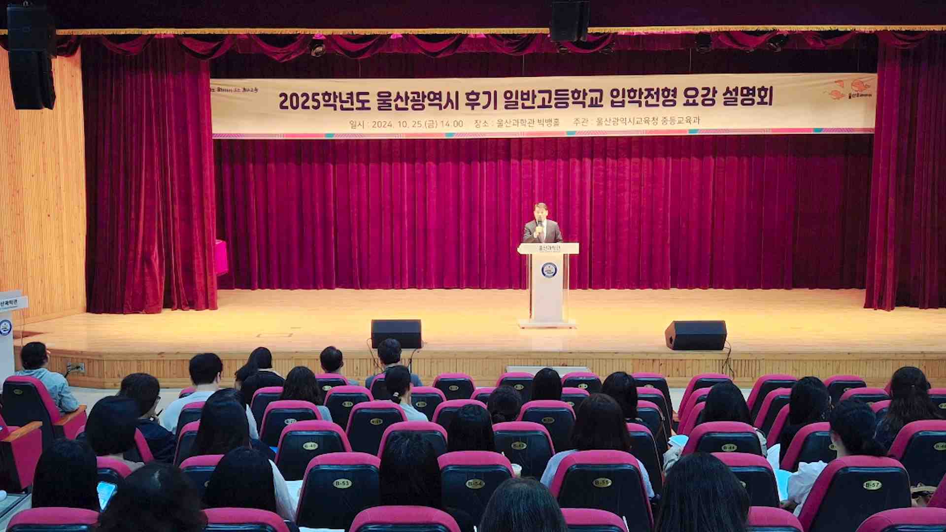 울산시교육청이 오늘(10/25) 울산과학관에서 2025학년도 후기 일반고 입학 전형 설명회를 열었습니다. 중학교 3학년 담임교사와 진로진학 교사 등이 참석한 설명회에서는 내신 교과 영역 80%, 비교과 영역 20% 반영 기준과 학군 배정 원칙 등이 공유됐습니다. 후기 일반고는 학생들이 희망 학군에서 60%를, 나머지 40%는 거...