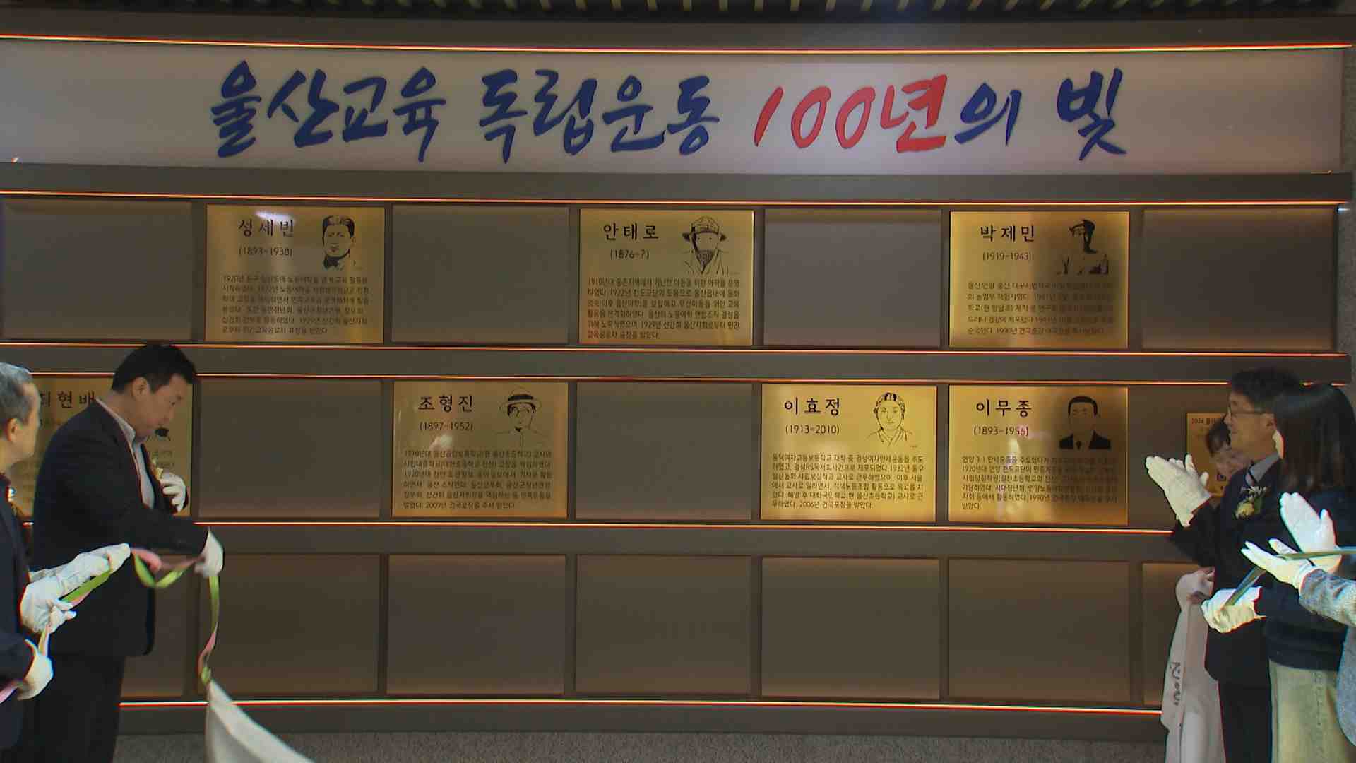 울산시교육청이 오늘(10/8) 지역 출신 독립운동가 7명에 대한 현판 제막식을 열었습니다.교육청은 한글날을 맞아 민족 계몽 운동에 앞장선 최현배, 박제민, 성세빈, 안태로, 이무종, 이효정, 조형진 선생의 업적을 기리기 위해 기념 상징물을 제작했다고 밝혔습니다. 초상화 동판에 정보 무늬 QR코드를 새긴 상징물은 학생...