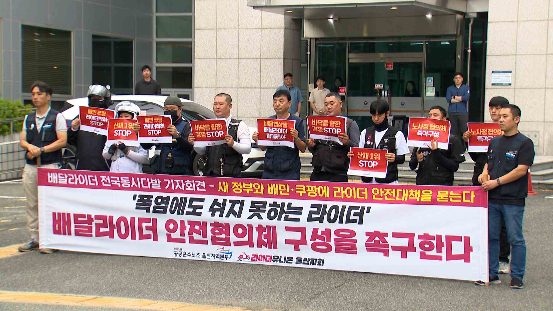 민주노총 라이더유니온지부가 오늘(7/16) 울산고용노동지청 앞에서 기자회견을 열고 배달 라이더들을 위한 안전협의체를 요구했습니다. 이들은 배민과 쿠팡의 경쟁 심화로 인력 착취가 강화되고 있다며 고용노동부가 안전협의체를 마련해 플랫폼 노동 전반의 기준을 마련해야 한다고 주장했습니다. 라이더유니온은 협의체 ...
