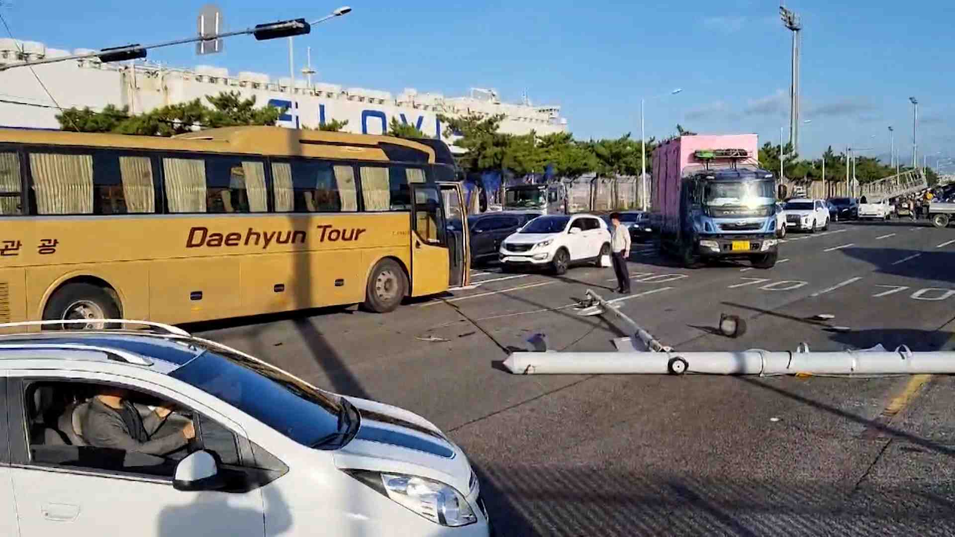화물차 신호등 들이받아.. 아산로 정체
