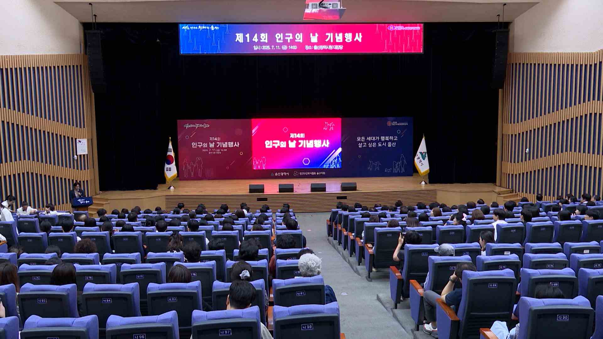 제14회 인구의 날 기념행사가 오늘(7/11) 울산시청 대강당에서 열렸습니다.울산시는 생활 인구 200만 명을 목표로 문화 시설 기반을 확충해 정주 여건을 개선하는 데 주력하겠다고 밝혔습니다. 정부는 인구 불균형에 대한 이해를 높이고 저출산 고령화 시대에 대응하기 위해 2011년부터 7월 11일을 인구의 날로 지정했습니...