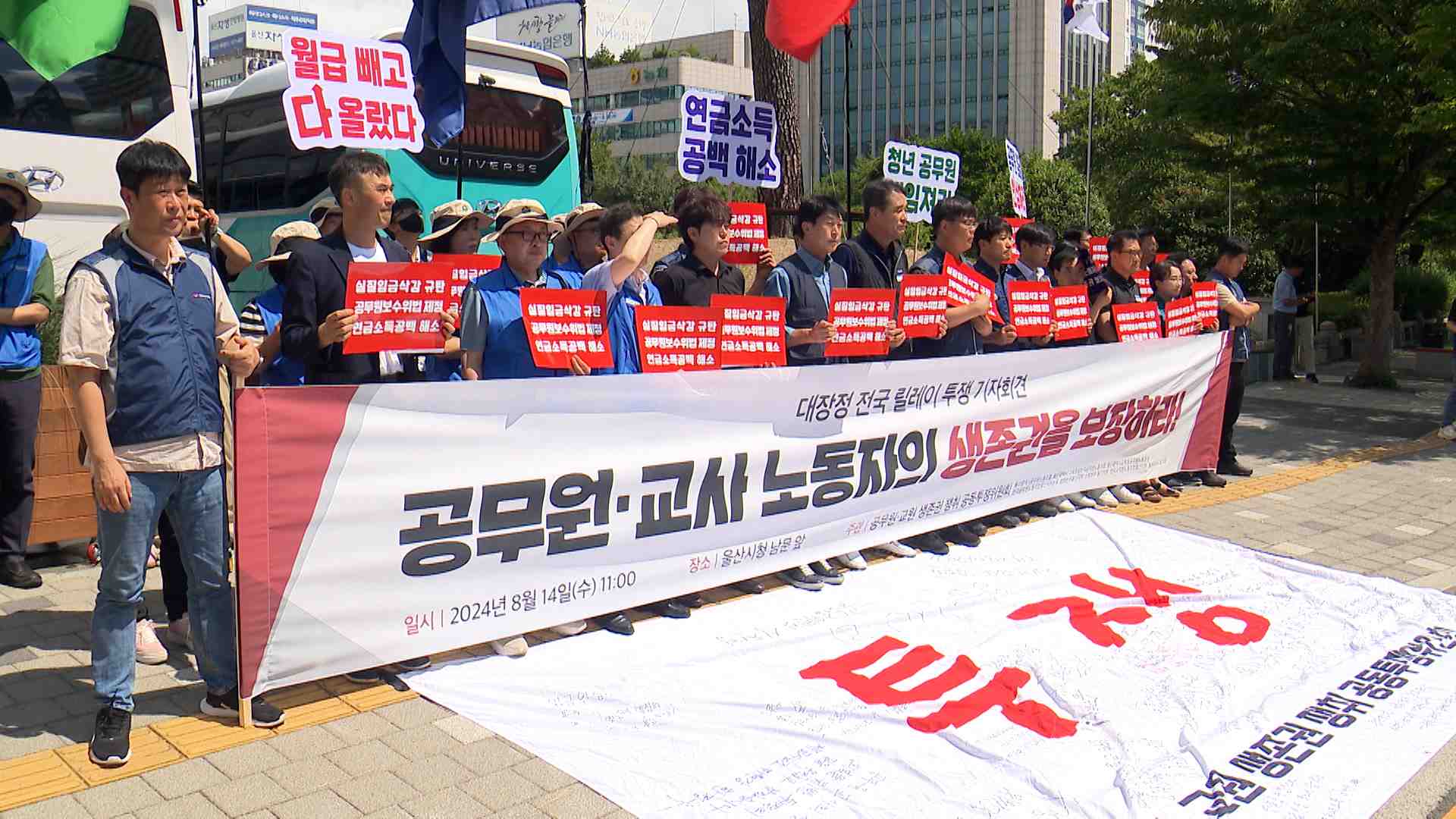 공무원·교원 생존권 쟁취 공동투쟁위원회는 오늘(9/14) 시청 앞에서 전국 릴레이 기자회견을 열고 물가 상승률을 감안할 때 실질임금이 삭감되고 있다며 적정 생활임금을 보장하라고 촉구했습니다. 공투위는 또한 정부의 일방적인 임금 결정 구조를 개선하기 위해서 공무원 보수위원회법을 제정하고, 공무원연금 지급 개시 ...