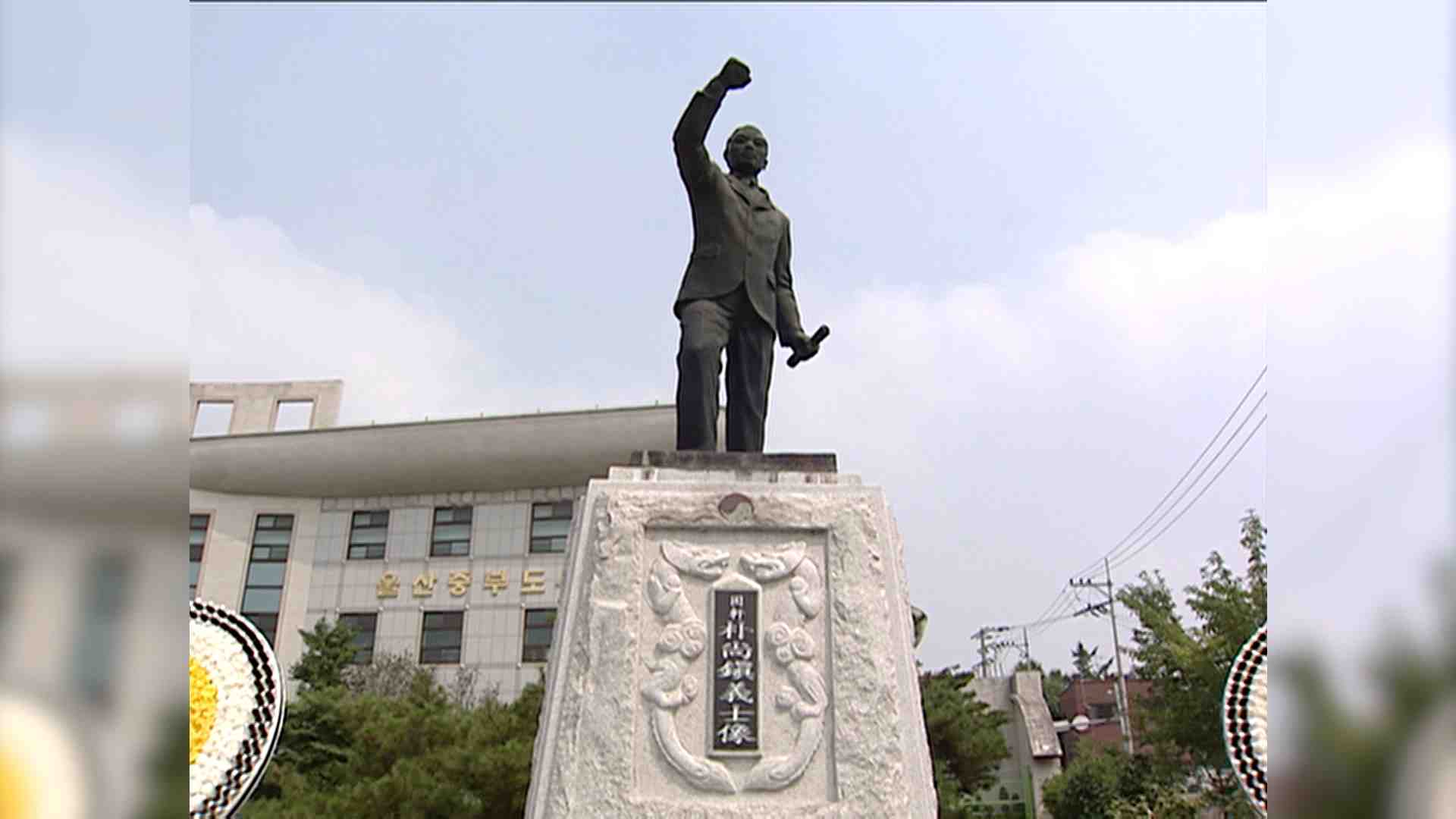 [앵커]대한광복회 총사령관 박상진 의사는 업적에 비해 낮은 예우를 받고 있다는 지적이 계속되고 있는데요. 울산시는 오늘 79주년 광복절을 맞아 동상 제막과 뮤지컬 공연 등을 통해 박 의사의 공적을 높이는 노력을 이어간다는 방침입니다. 최지호 기자. [리포트 ] 울산 출신 독립운동가 고헌 박상진 의사가 힘차게 주먹...