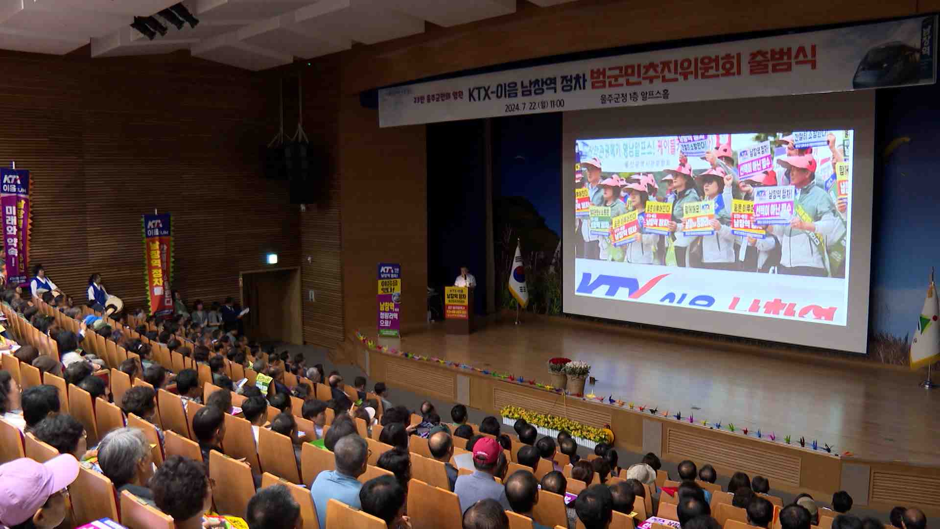 KTX-이음 남창역 정차 범군민추진위원회가 오늘(7/22) 울주군청에서 출범식을 가졌습니다. 추진위는 각 읍, 면 또는 단체들이 개별적으로 추진하던 KTX-이음 남창역 정차 홍보 활동을 확대하기 위해 결성됐습니다. 울주군은 추진위와 함께 모든 행정력을 총동원해 남창역 정차를 성공시키겠다고 밝혔습니다.
