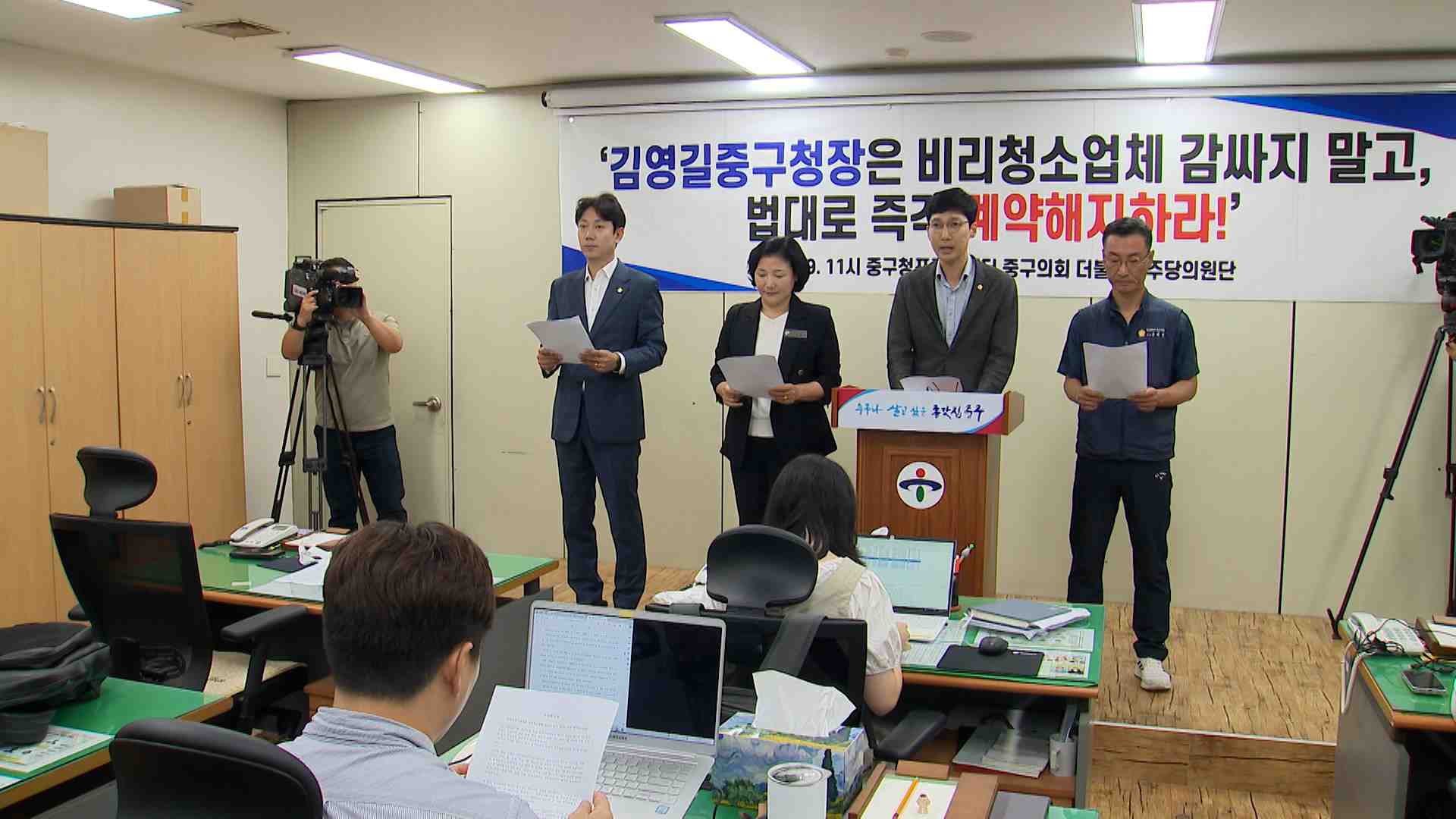 더불어민주당 소속 중구의회 의원들이 기자회견을 열고 횡령으로 유죄 판결을 받은 청소용역 업체와의 계약 해지를 촉구했습니다. 이들은 중구와 계약된 업체 두 곳이 허위로 직원을 등록해 4년 동안 6억 원 넘게 횡령한 사실이 밝혀졌다며 이같이 주장했습니다. 이에 대해 중구는 해당 업체들의 유죄 판결이 지난달에야 나...