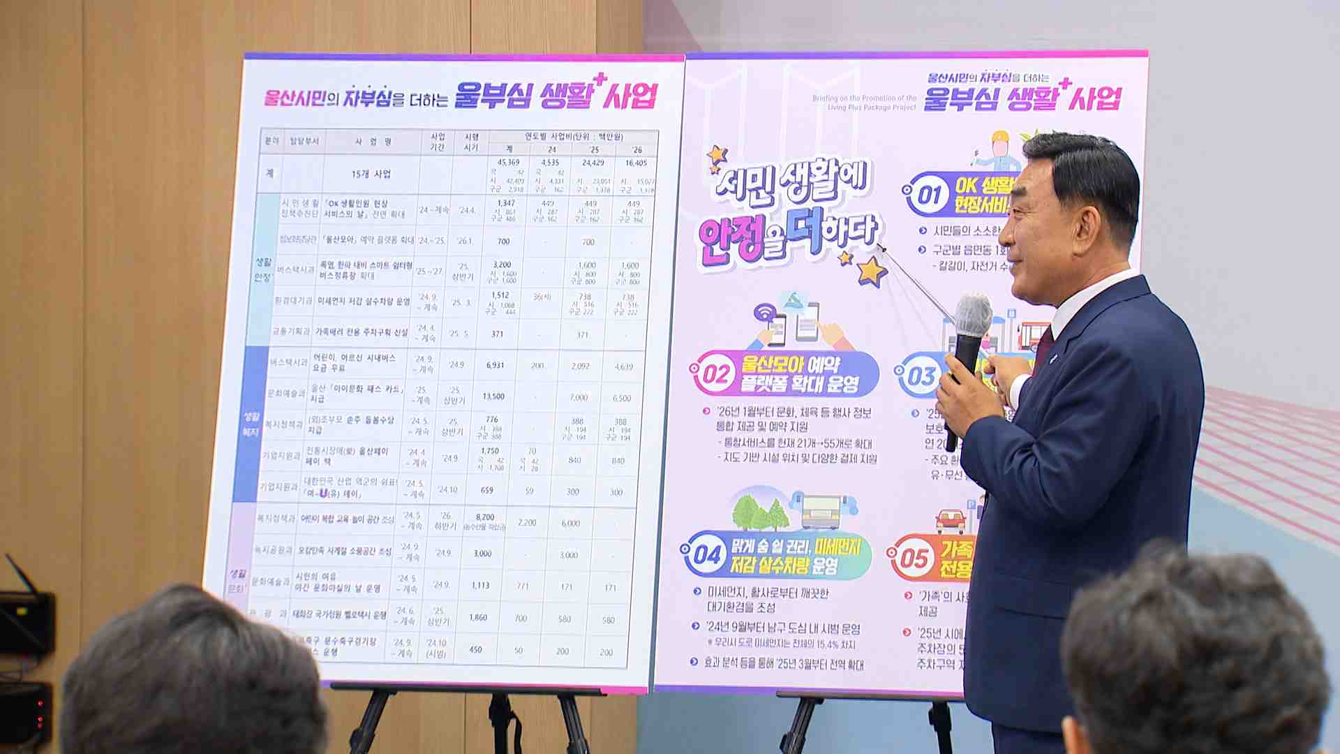 울산시는 민선 8기 후반기를 맞아 시민들의 일상생활 속 만족도를 높이는 사업을 중점적으로 추진한다고 밝혔습니다. 이번 사업은 3년간 454억 원을 투입해 초등생과 어르신 버스 요금 무료, 조부모 손주 돌봄 수당 등 15개 과제로 진행될 예정입니다. 울산시는 보건복지부의 사회보장제도 신설 협의와 조례 제·개정 등의 ...