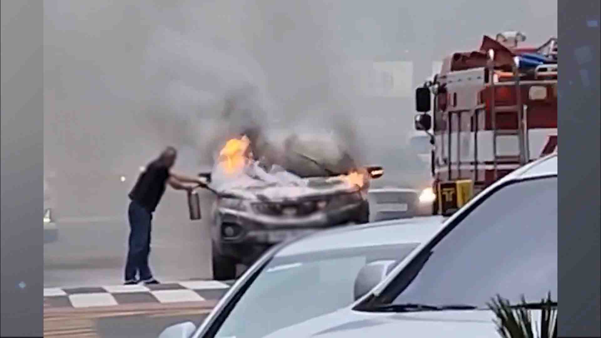 병영오거리 차량 화재.. 퇴근길 교통 체증