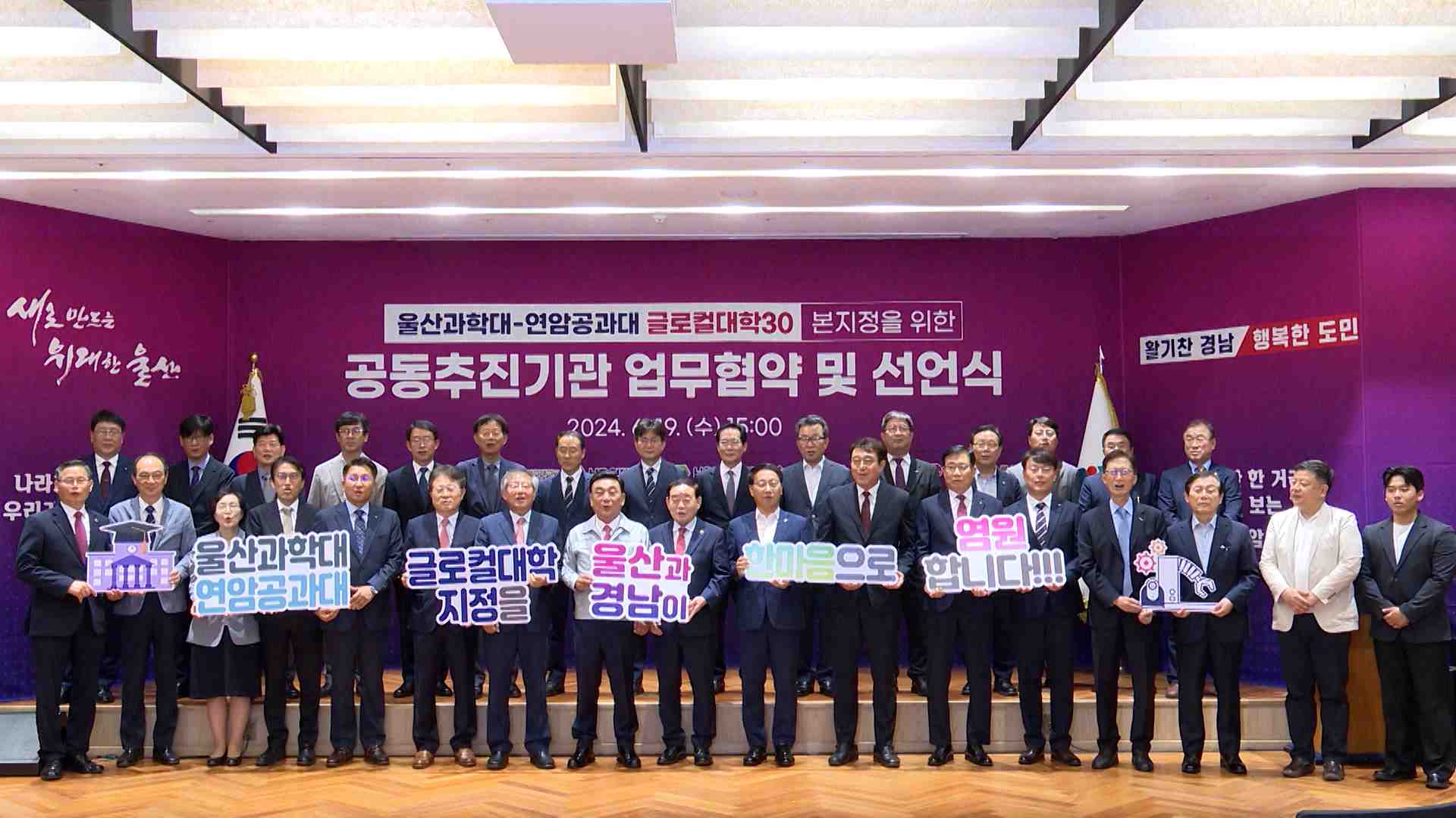 울산시와 기업체, 공공기관 등 30개 기관이 울산과학대학교와 연암공과대학교의 글로컬대학 지정을 위한 공동협력을 선언했습니다. 특히 현대중공업과 엘지전자 등 9개 기관은 업무협약을 체결하고 맞춤형 인재양성과 산학협력 강화 등 글로컬대학 지정을 위한 업무협약을 체결했습니다. 지역 중점의 세계 대학 육성을 위한...