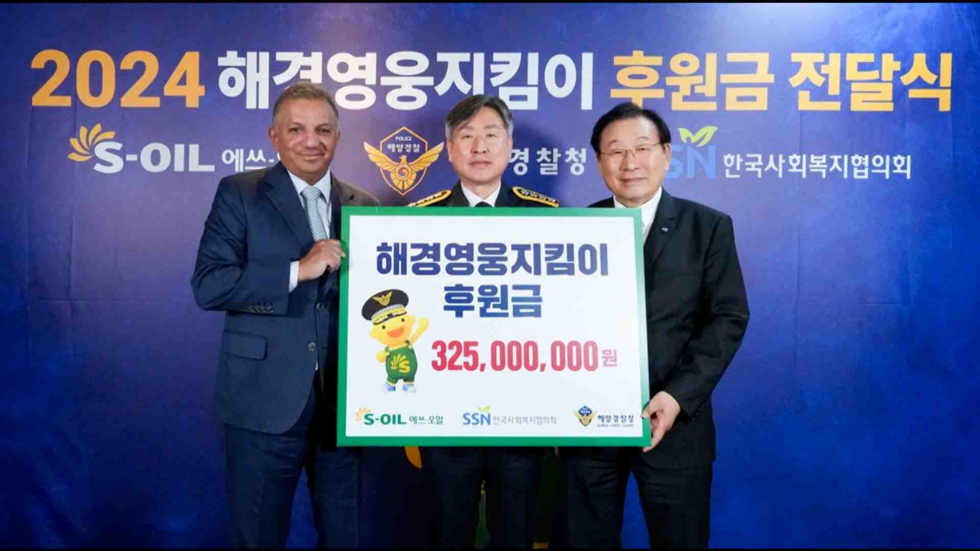 에쓰오일은 오늘(6/10) 한국사회복지협의회와 함께 해경 영웅지킴이 후원금으로 써 달라며 3억 2천5백만 원을 전달했습니다. 이 후원금은 공상해경 치료비와 순직해경 유자녀 학자금 등으로 사용될 예정입니다. 에쓰오일은 지난 2013년 해양경찰청과 ‘해경 영웅지킴이’ 협약을 맺은 이후 매년 후원금을 전달하고 있습니다.