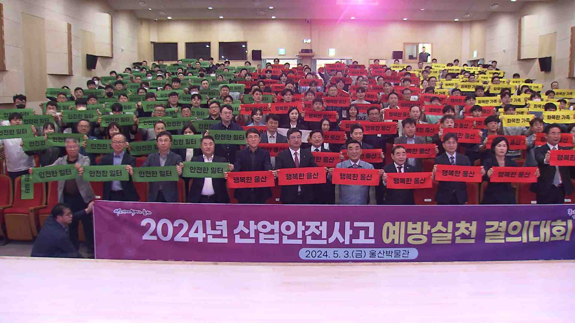울산시가 관계 기관과 기업체들이 참여한 가운데 산업안전사고 예방실천 결의대회를 개최했습니다. 이번 행사에는 고용노동부 울산지청과 산업안전보건공단 등 11개 기관과 기업체 관계자 250여 명이 참석해 산업재해 예방에 뜻을 모았습니다. 한편 고용노동부가 집계한 지난해 산업재해 사망자는 812명으로 울산에서도 11...