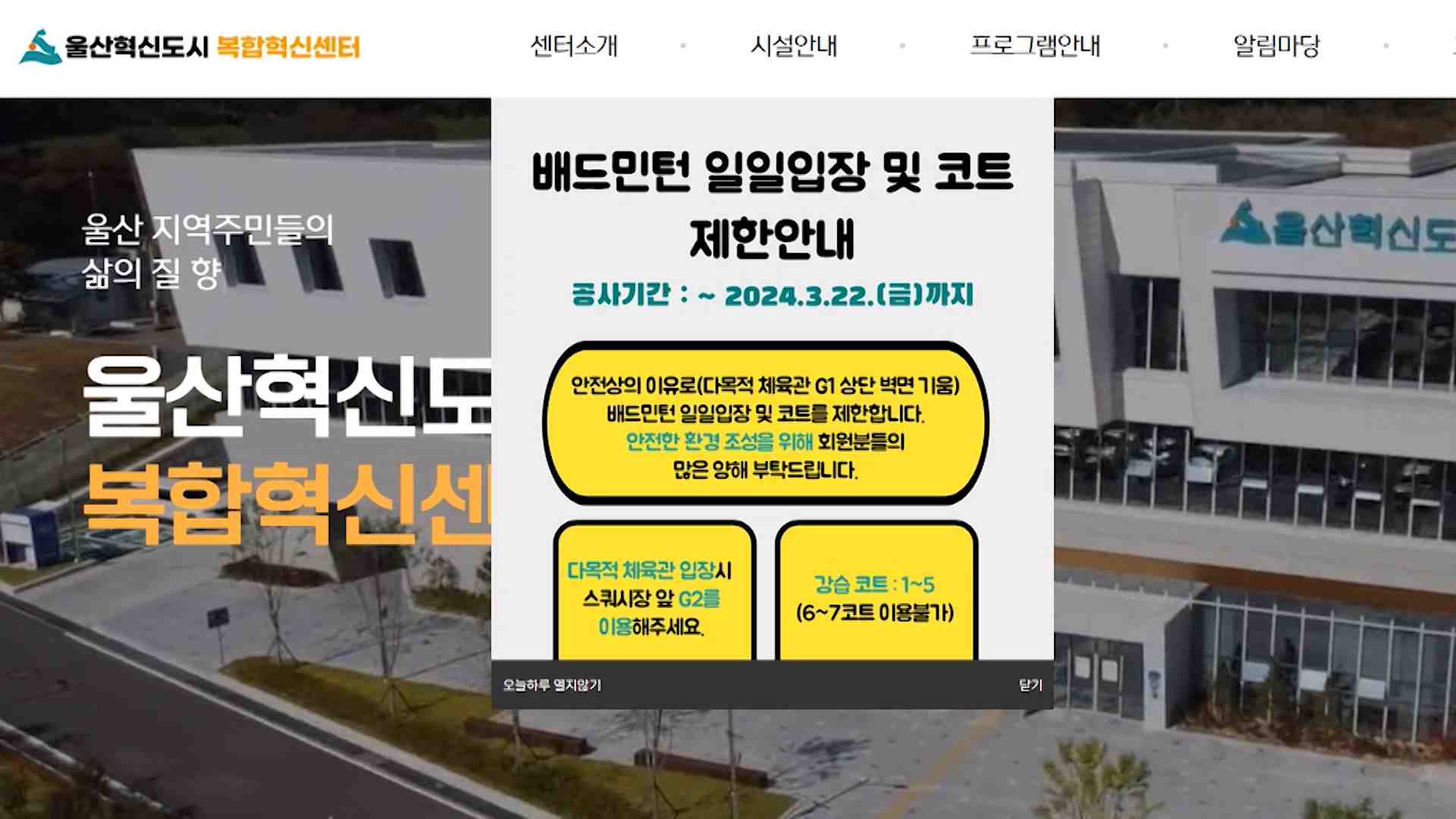 지난해 문을 연 중구 혁신도시 복합혁신센터 시설 일부에서 하자가 발생해 운영이 제한되고 있습니다. 문제가 발생한 구역은 배드민턴 등을 운영하는 다목적체육관으로 체육관 상단 벽면이 기울어져 운영을 하지 못하고 있습니다. 복합혁신센터 측은 체육관 벽면 흡음재 등이 떨어져 발생한 것으로 보인다며, 하자보수를 거...