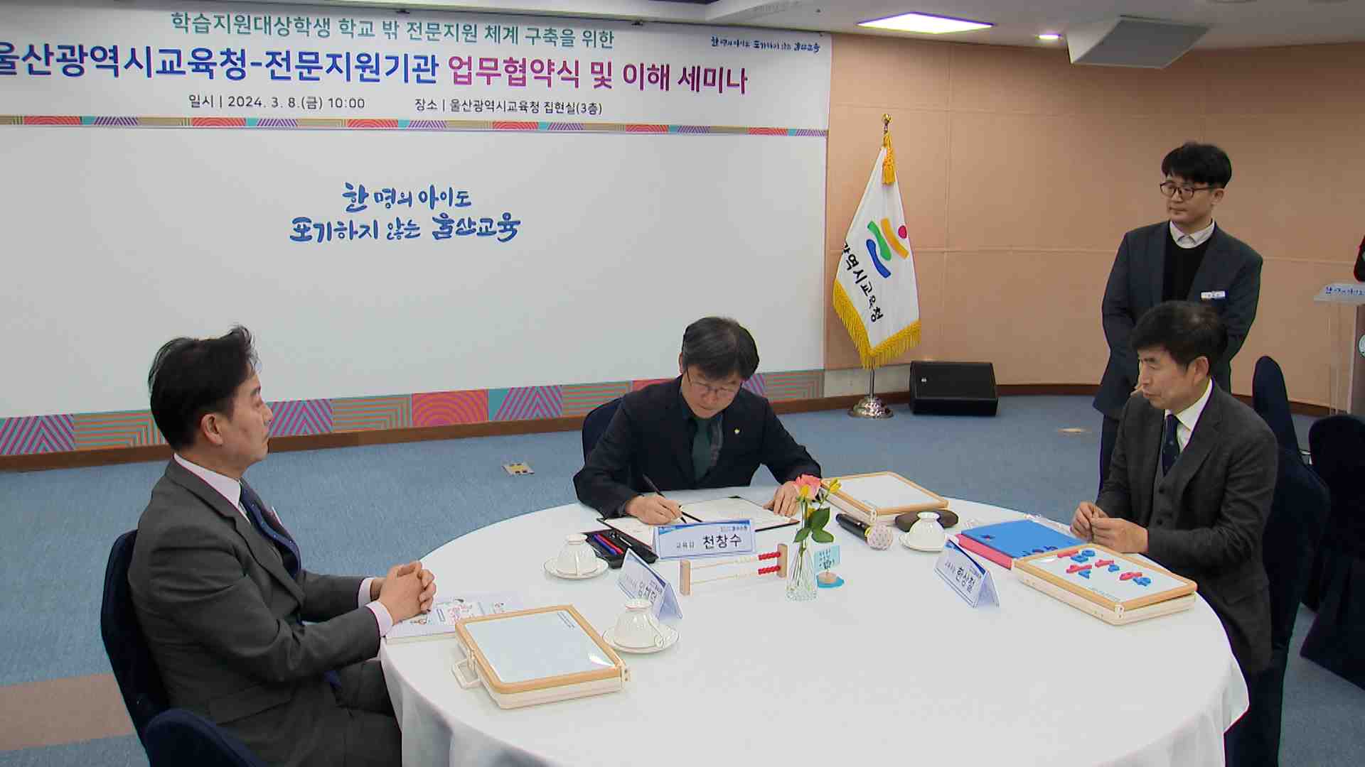 울산시교육청은 특수한 이유로 학습에 어려움을 겪는 학생을 지원하기 위해 전문 지원 기관을 지난해 23곳에서 올해 31곳으로 확대하기로 하고 오늘(3/8) 협약식을 가졌습니다. 이들 기관들은 난독학생과 경계선 지능 의심 학생, 다양한 특수·복합요인으로 학습에 어려움을 겪는 학생들에게 1대1 맞춤형 지원을 제공합니다....