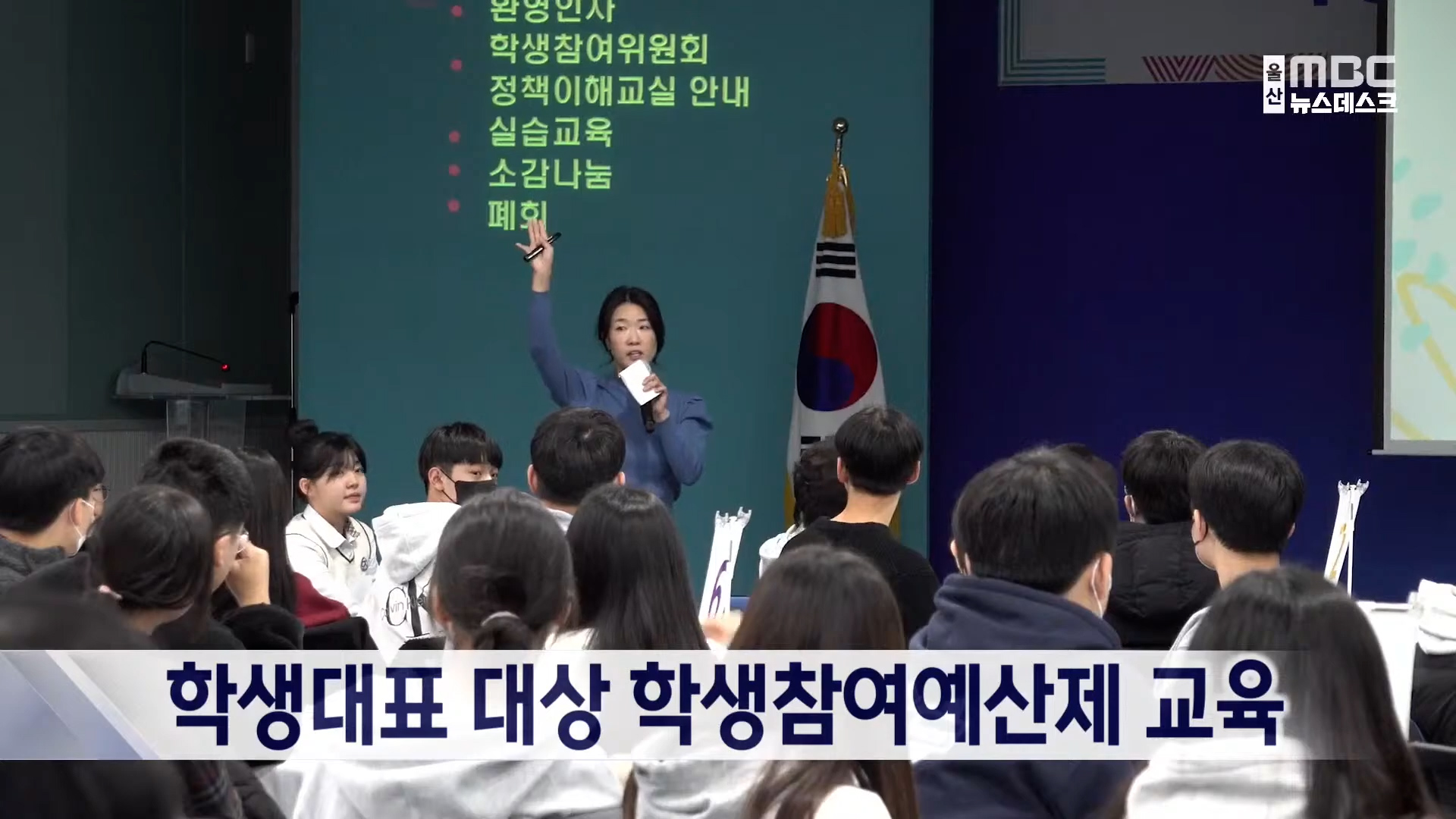울산시교육청은 오늘(2/17) 중·고등학교 학생 대표들을 대상으로 학생참여예산제에 대한 실습과 토론을 진행했습니다.학생 대표들은 학교 규모에 따라 편성된 160만원에서 310만원의 예산을 효율적으로 사용하는 방법을 익히고 상호 소통하는 시간을 가졌습니다.전교학생회 선거를 마친 중고등학생은 오늘 연수를 실시했고,...