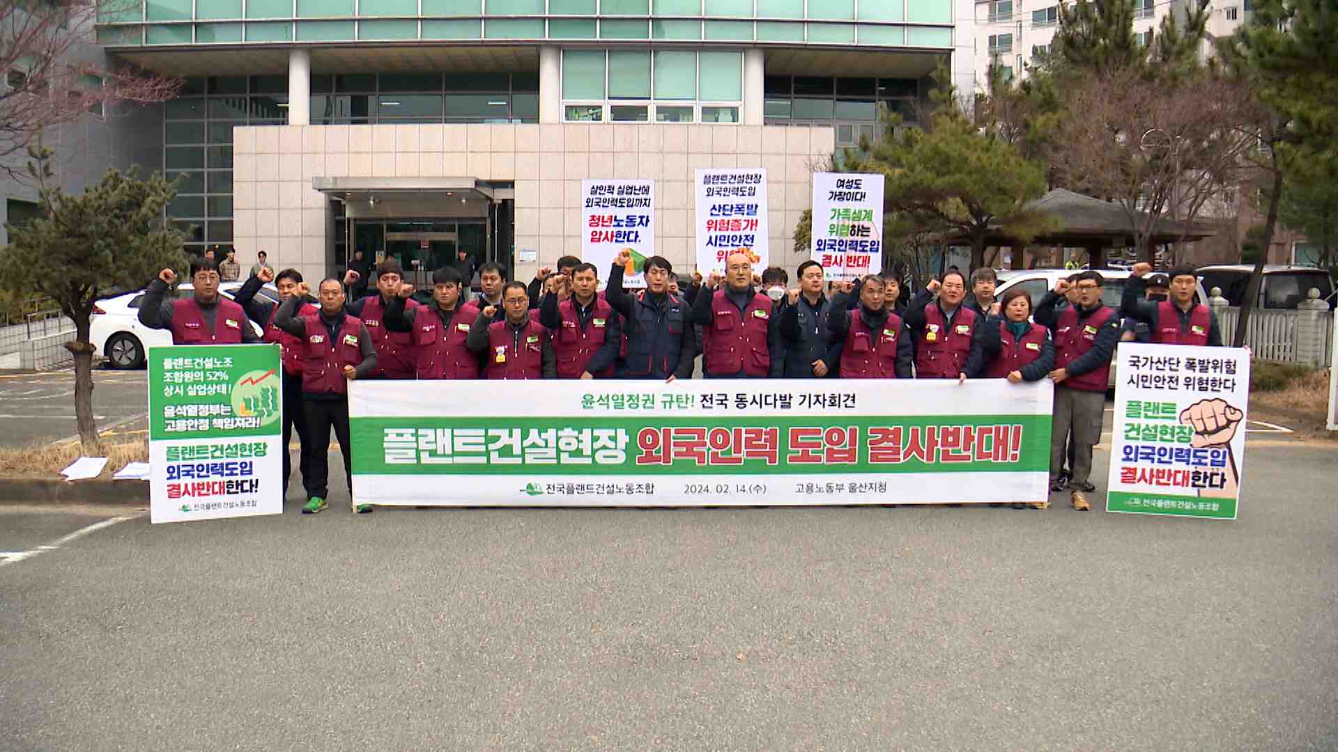국가중요시설로 분류되는 석유화학공장과 발전소 건설 현장에 외국인 노동자를 도입하는 정책이 추진되자 노동계가 반발하고 나섰습니다. 민주노총 전국플랜트노조는 오늘(2/14) 기자회견을 열고, 국가중요시설의 경우 시설을 건립하는 것 자체가 국가와 기업의 기밀에 해당된다며, 국가중요시설 공사에 무분별하게 외국인...
