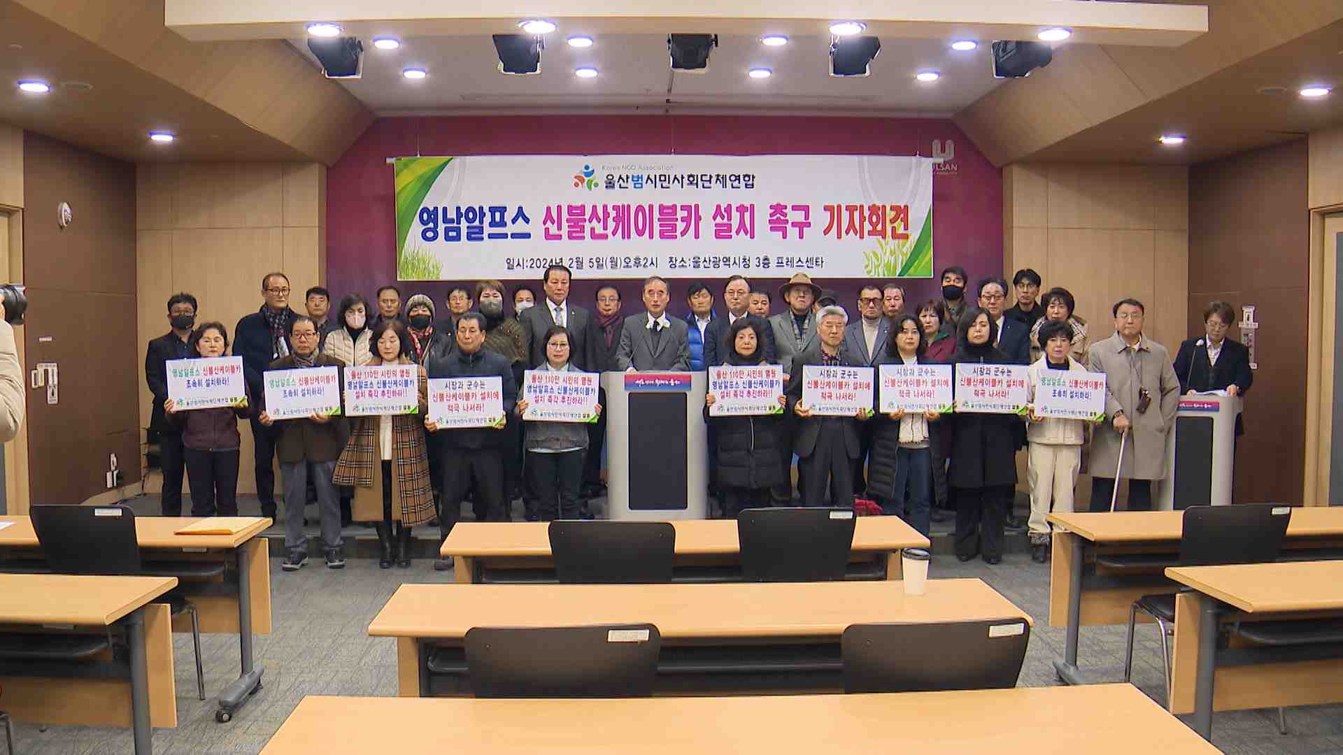 울산 범시민 사회단체연합은 오늘(2/5) 울산시청 프레스센터에서 기자회견을 열고 시민들의 오랜 숙원사업인 영남알프스 케이블카 사업의 조속한 추진을 촉구했습니다. 이들은 울산은 관광자원이 풍부하지만 타지역에 비해 관광객을 불러들일 강력한 핵심 체험 시설이나 관광 인프라가 부족하다며, 소모적인 찬반 논쟁을 끝...