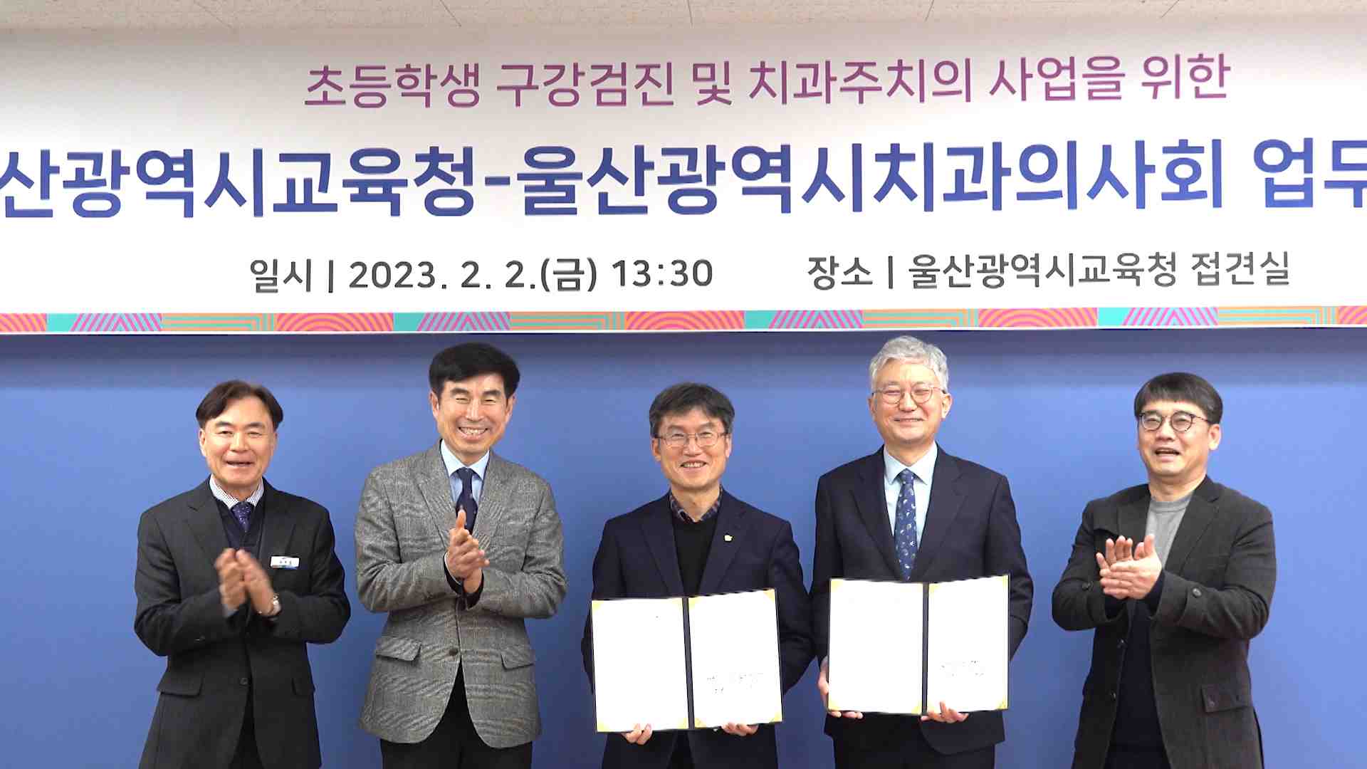 울산시교육청과 울산치과의사회가 오늘(2/2) 초등학생 치과주의제 대상 확대와 의료진 확보를 위해 업무협약을 체결했습니다. 치과주의제는 당초 초등학교 4학년 대상에서 올해부터 1,4학년으로 확대하며 일반 구강검진외에 최면세균만검사와 치태·치면 세균막 제거, 볼소도포 등을 추가로 받을 수 있습니다. 또 그동안은 ...
