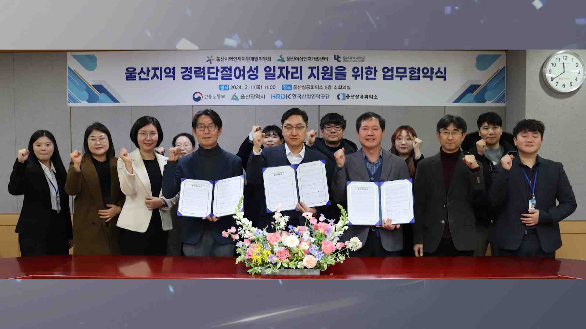 울산상의를 중심으로 구성된 울산인적자원 개발위원회는 오늘(2/1) 울산여성인력개발센터, 울산과학대학교와 ‘울산지역 경력단절여성 일자리 지원 공동협력 업무협약’을 체결했습니다.이번 협약으로 각 기관은 울산 지역 경력단절 여성을 위한 직업훈련 프로그램 설계와 취업연계를 위한 공동 네트워크를 구축하기로 했으며...