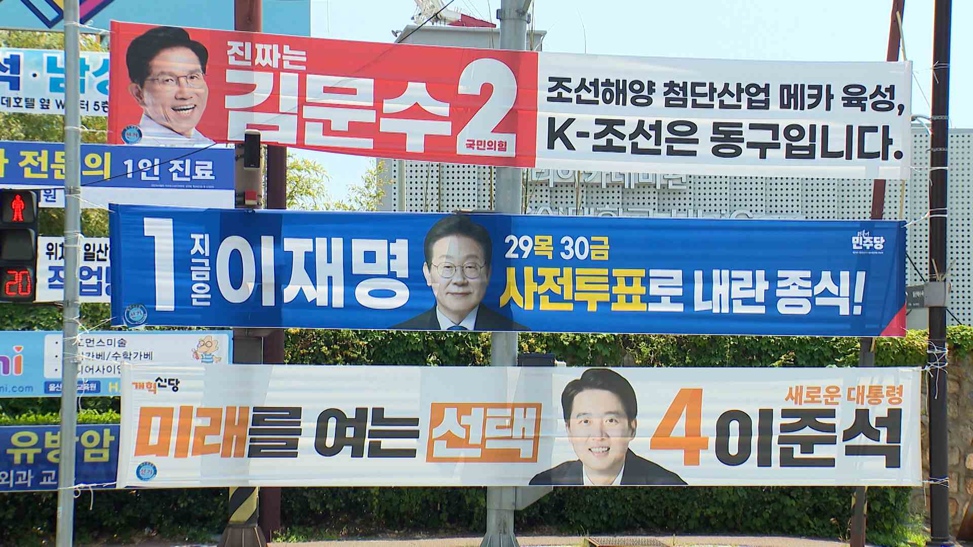 제21대 대통령선거가 종료와 함께 울산시가 지역 곳곳에 게시된 선거 현수막 일제 정비에 나섭니다. 울산시는 각 정당에 협조를 요청해 자진 정비를 유도하는 한편 이번 주말까지 합동 정비반을 통한 수거도 같이 진행할 계획입니다. 수거한 폐현수막은 정치적 내용이 담기지 않은 경우 재활용하고, 민감한 내용의 현수막은...