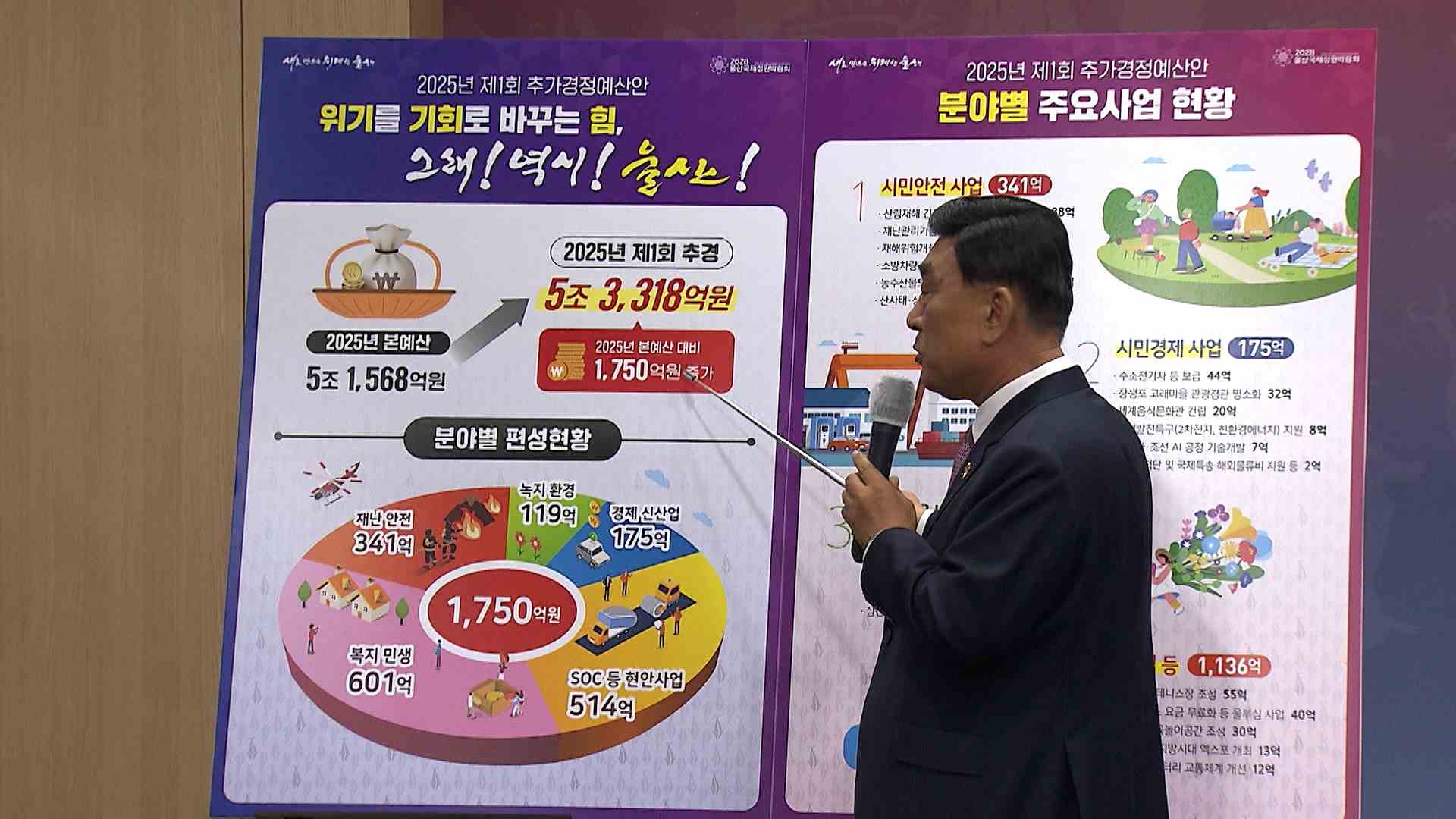 울산시가 올해 1차 추가경정예산으로 1,750억 원을 편성했습니다. 울산시는 오늘(5/28) 기자회견을 열고 시민 안전과 지역 경제 활성화를 위한 투자에 초점을 두고, 노후 소방헬기 교체와 산림재해 긴급 대책, 수소전기차 보급, 국제정원박람회 준비 등에 필요한 예산을 추가 편성했다고 밝혔습니다. 이에 따라 올해 울산시...