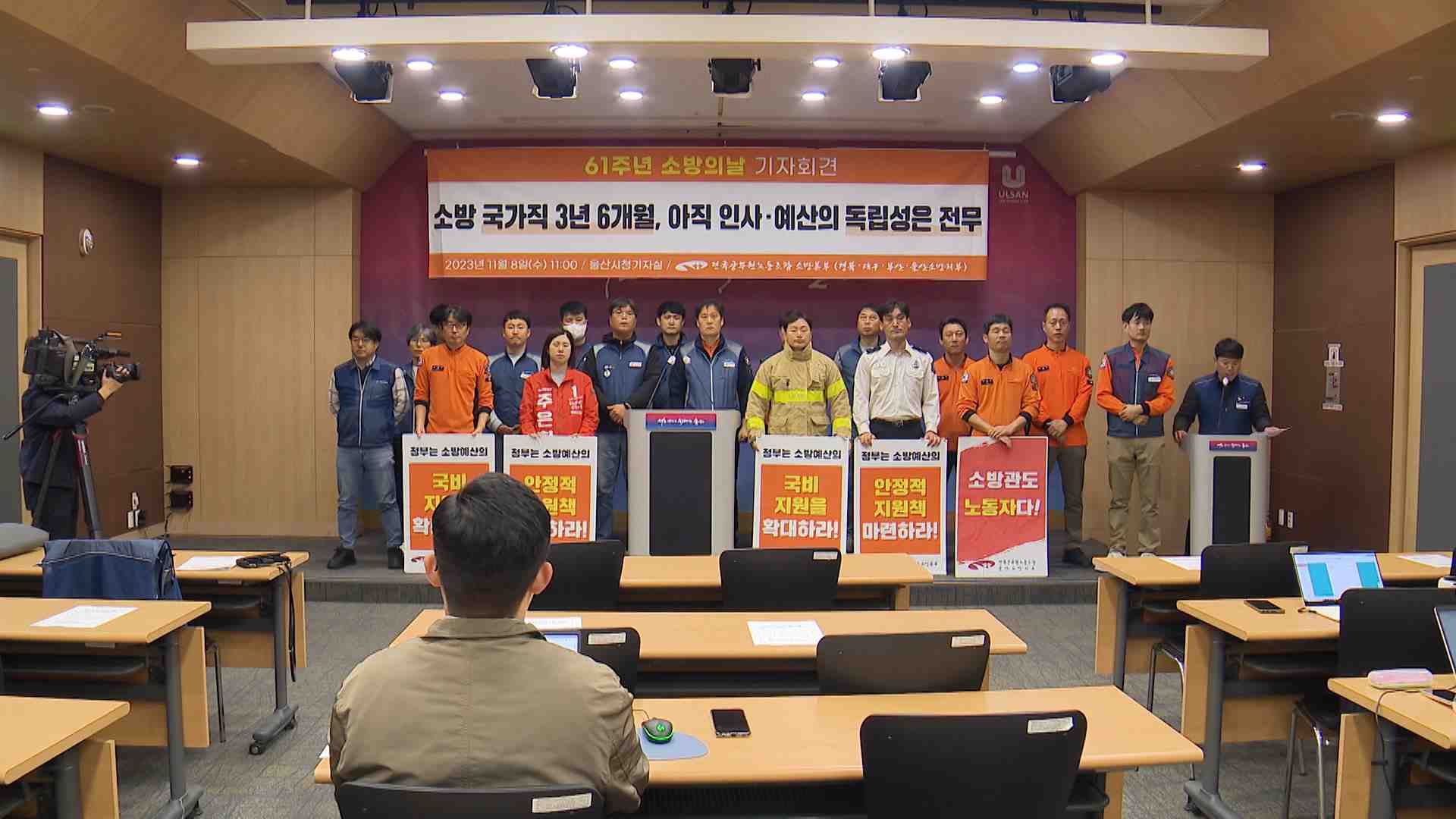 전국공무원노동조합 울산소방지부는 61주년 소방의 날을 맞아 오늘(11/8) 시청 프레스센터에서 기자회견을 열고 소방예산의 안정적 지원책을 마련하라고 촉구했습니다. 노조는 지난 2020년 4월 소방공무원의 신분이 국가직 공무원으로 전화되었지만 함께 개정됐어야 할 법과 예산은 그대로라며 인사와 예산이 독립된 조직을...