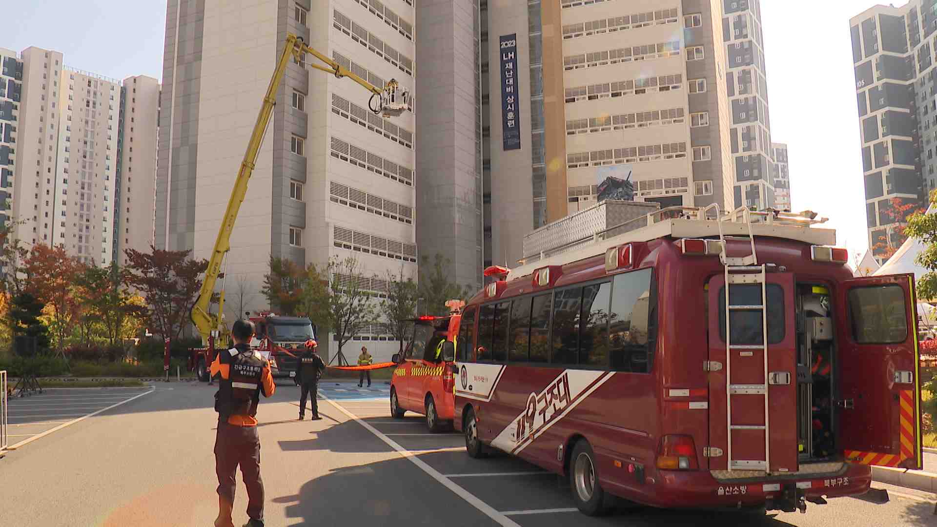 한국토지주택공사 부산울산지사는 오늘(10/23)북구 송정동 LH1단지 아파트에서 울산시와경찰, 소방서 관계자 등 2백여명이 참가한가운데 재난대응 합동 모의훈련을 실시했습니다.이번 훈련은 북구 울산공항 북쪽 7.8킬로미터 지점에서 규모 6.7의 지진이 발생해 공사현장이 붕괴된 상황을 가정해 진행됐으며, 재난발생 시 ...