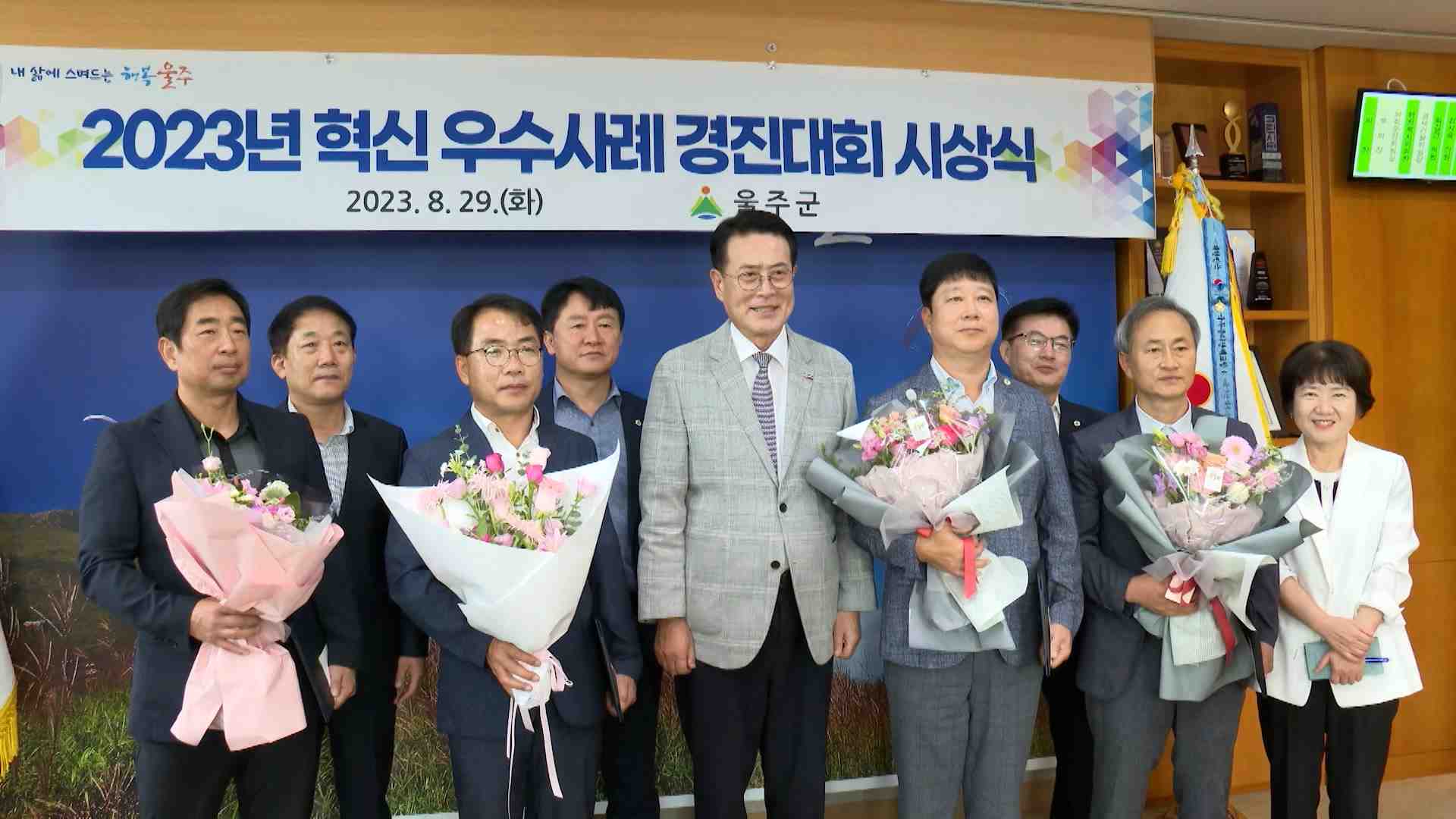 울주군은 오늘(8/29) 2023년 혁신 우수사례 경진대회를 열어 우수사례 5건을 선정해 포상했다고 밝혔습니다. 울주군은 11개 부서에서 제출된 16개 사례를 심사한 결과 '불법 노점이 사라진 품격 있는 벚꽃축제 즐기기'를 최우수작으로 선정 했습니다. 우수사례로는 마을 단위 재난 대응 응급시스템 구축과 공중화장실에 출...