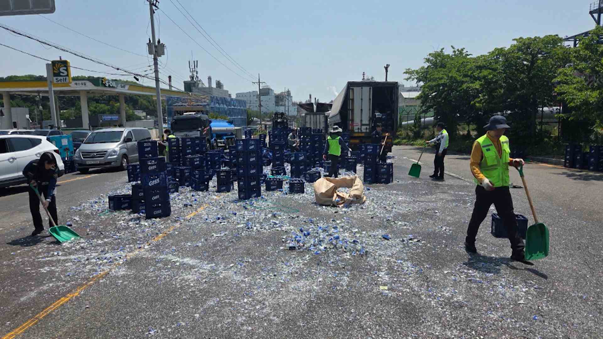 도로에 맥주 상자 쏟아져‥ 2시간 교통 정체