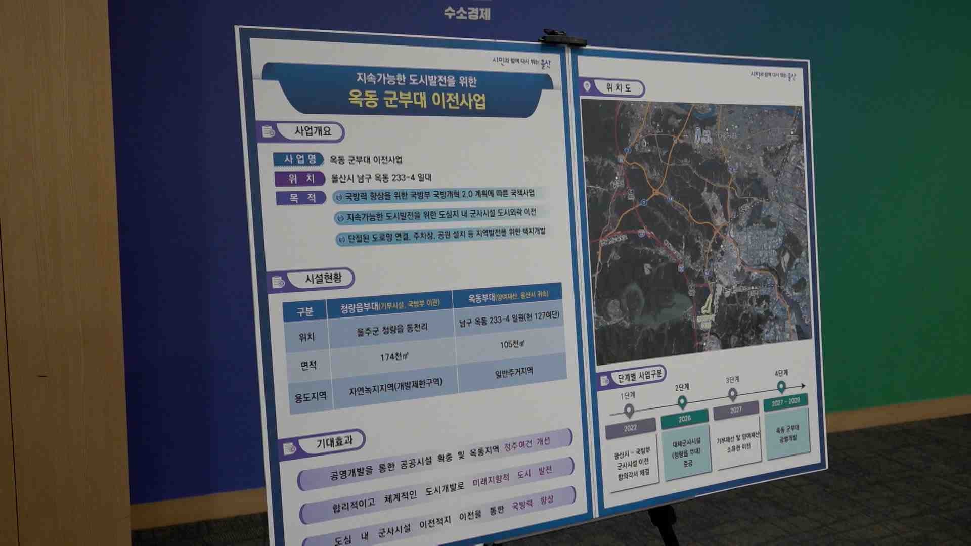 옥동 군부대 이전사업이 국유재산정책심의를 통과해 사업 추진에 탄력을 받을 것으로 기대됩니다. 이에 따라 울산시는 오는 2027년 상반기까지 옥동 군부대를 울주군 청량읍 일원으로 이전하고 이곳에 2029년까지 공동주택과 공원, 주민편익 시설 등을 조성할 계획이라고 밝혔습니다. 옥동 군부대 이전은 기부 대 양여 방식...