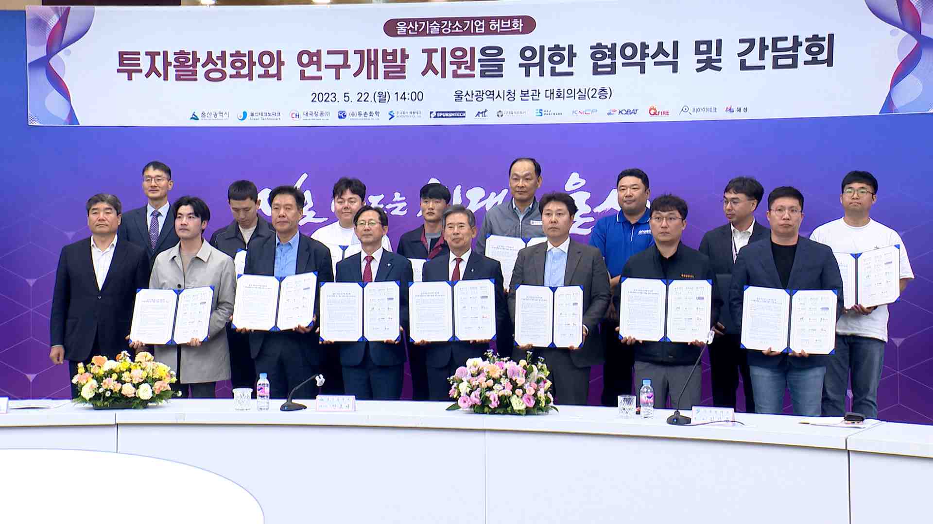 울산시와 울산테크노파크, 울산 이전 기업 12개사가 오늘(5/22) 울산시청에서 기술강소기업유치와 연구개발 지원을 위한 업무협약을 체결했습니다. 울산시와 테크노파크는 협약기업이 울산에 안정적으로 정착하고 성장할 수 있도록 최소 6천만원에서 최대 8천만원의 연구개발 자금을 지원하기로 했습니다. 협약기업은 올해 ...
