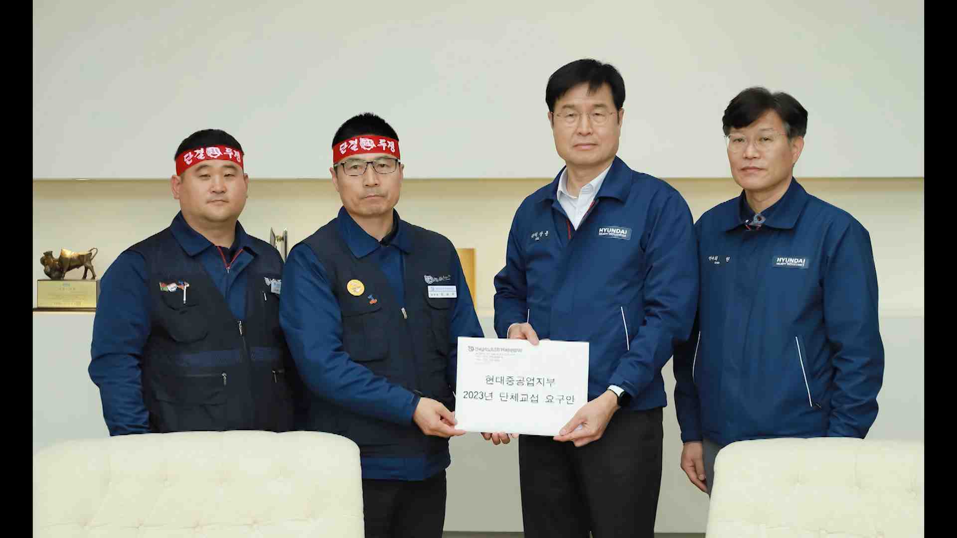 현대중공업 노조가 오늘(4/25) HD현대중공업 본관 앞에서 전달식을 갖고 올해 단체교섭 요구안을 회사에 전달했습니다. 이번 요구안은 HD현대 그룹 5개 회사 노조가 공동으로 마련했으며 기본급 18만 4천900원 인상, 신규채용 등이 포함됐습니다. HD현대중공업 노사는 다음달 16일 단체교섭 상견례를 갖고 올해 임단협 교섭...
