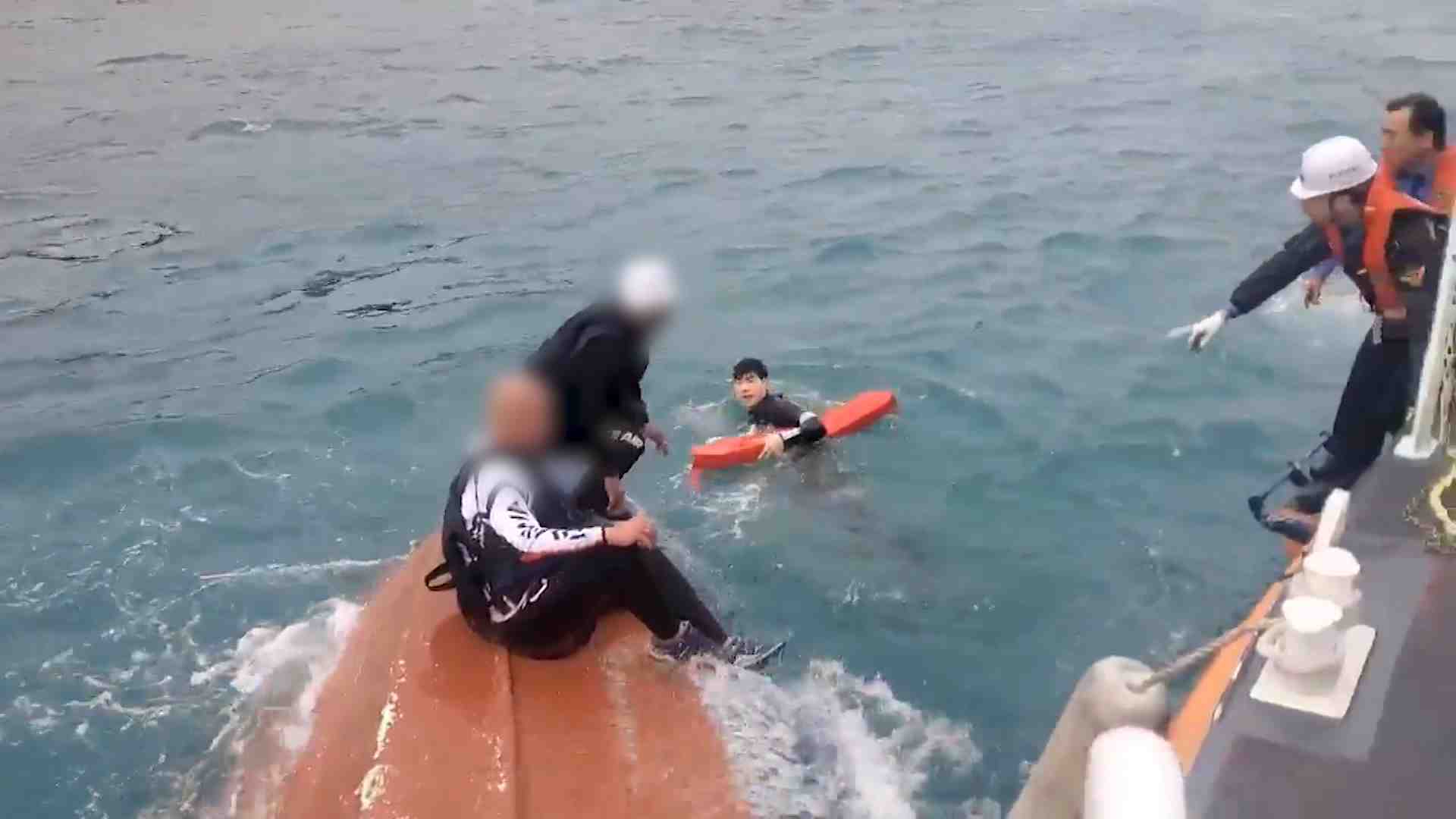 4명 탄 레저보트 전복..탑승자 모두 구조