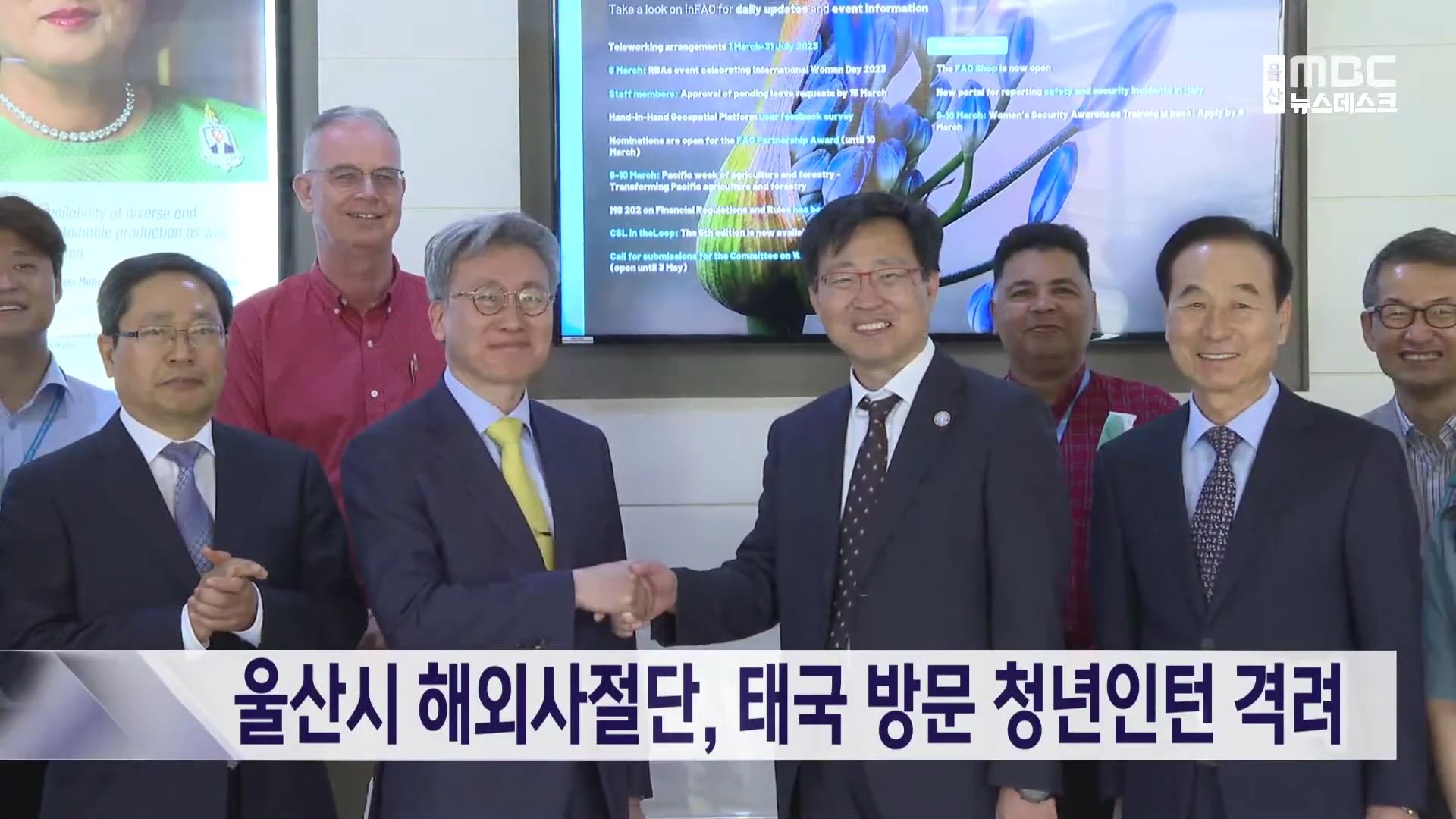 9박 10일 일정으로 출국한 울산시 해외사절단이 태국을 방문해 공식 일정을 시작했습니다. 박철민 울산시 국제관계대사는 어제(3/10) 방콕에 위치한 유엔식량농업기구를 방문해 국제교류 사업을 논의하고 지역 출신의 청년인턴 손어진 씨를 격려했습니다. 사우디아라비아 국영기업 아람코의 초청으로 성사된 이번 해외순방...
