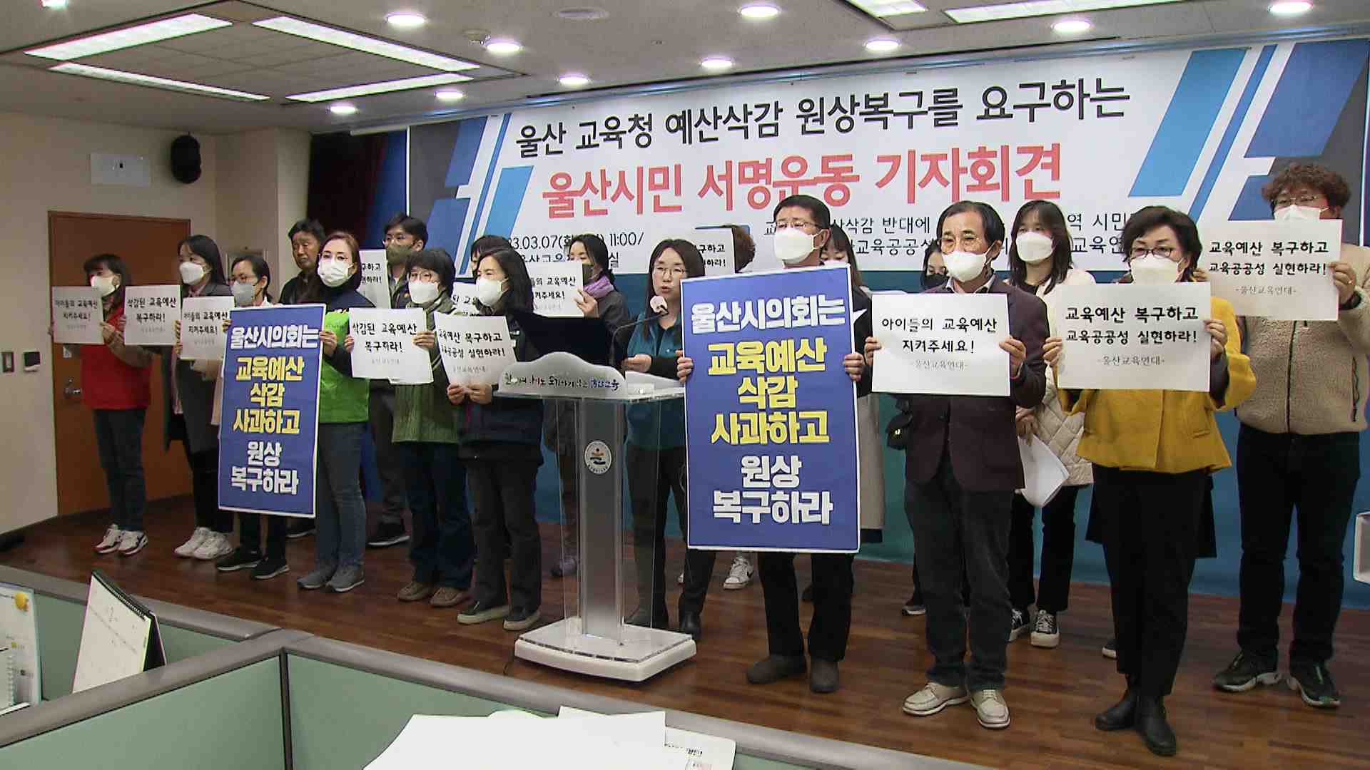 36개 시민사회단체와 진보정당으로 구성된 울산교육연대는 오늘(3/7) 기자회견을 갖고 울산교육청은 2023년 당초예산 심의 과정에서 삭감된 예산을 추가경정예산에 재편성해서 시의회에 제출할 것을 요구했습니다. 이들은 제주연수원이나 노동인권교육, 마을교육공동체 거점센터 등 고 노옥희 교육감의 공약은 지켜져야 한...