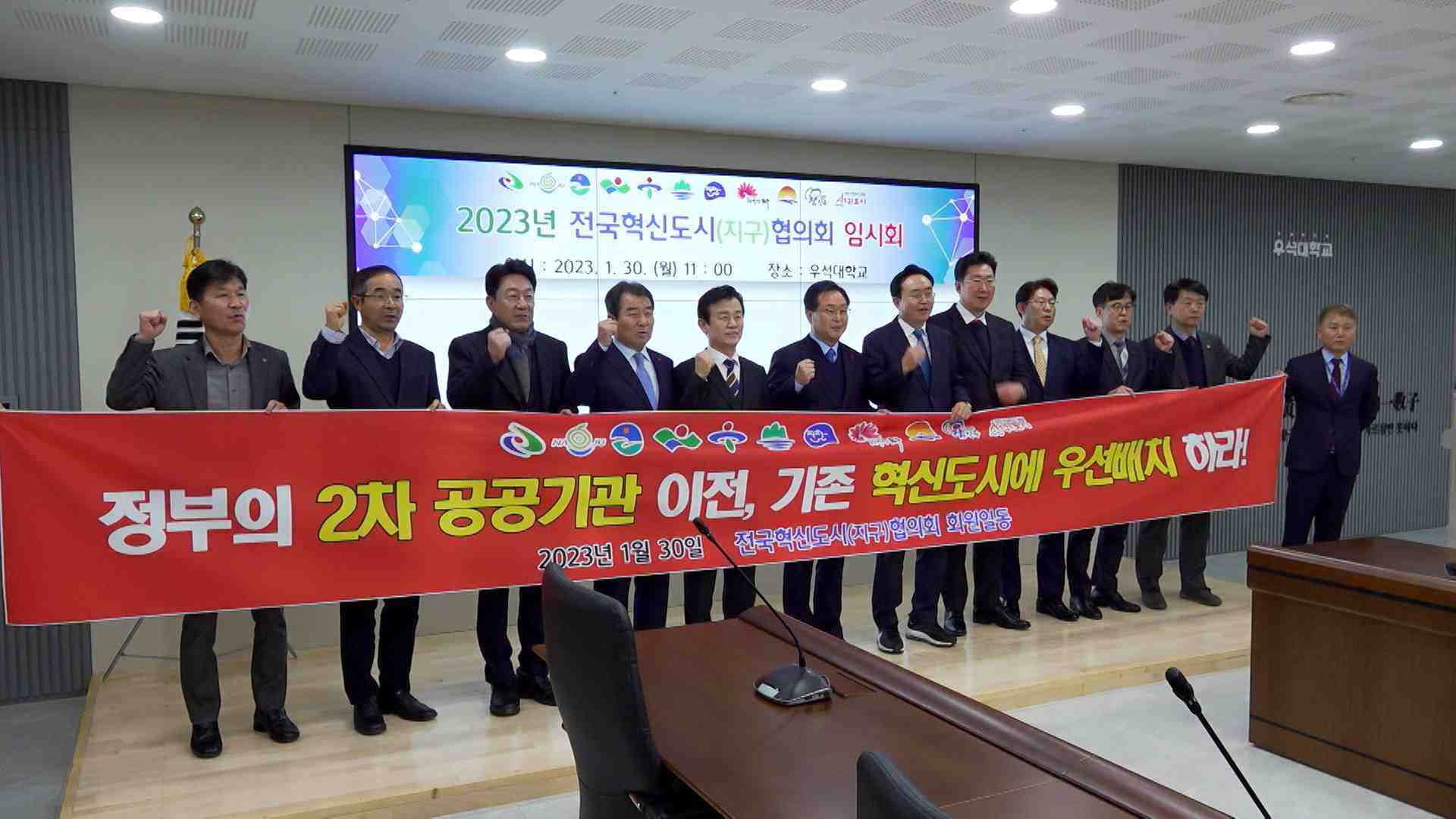 전국혁신도시협의회가 오늘(1/30) 임시회를 열고 수도권 공공기관 2차 이전과 관련해 공공기관을 기존 혁신도시에 우선적으로 배치해달라고 촉구했습니다. 전북 완주에 위치한 우석대학교에서 열린 이번 임시회에는 울산 중구를 포함한 전국 11개 기초자치단체가 참석했습니다. 이날 결의된 공동성명서에는 전국 10개의 혁...