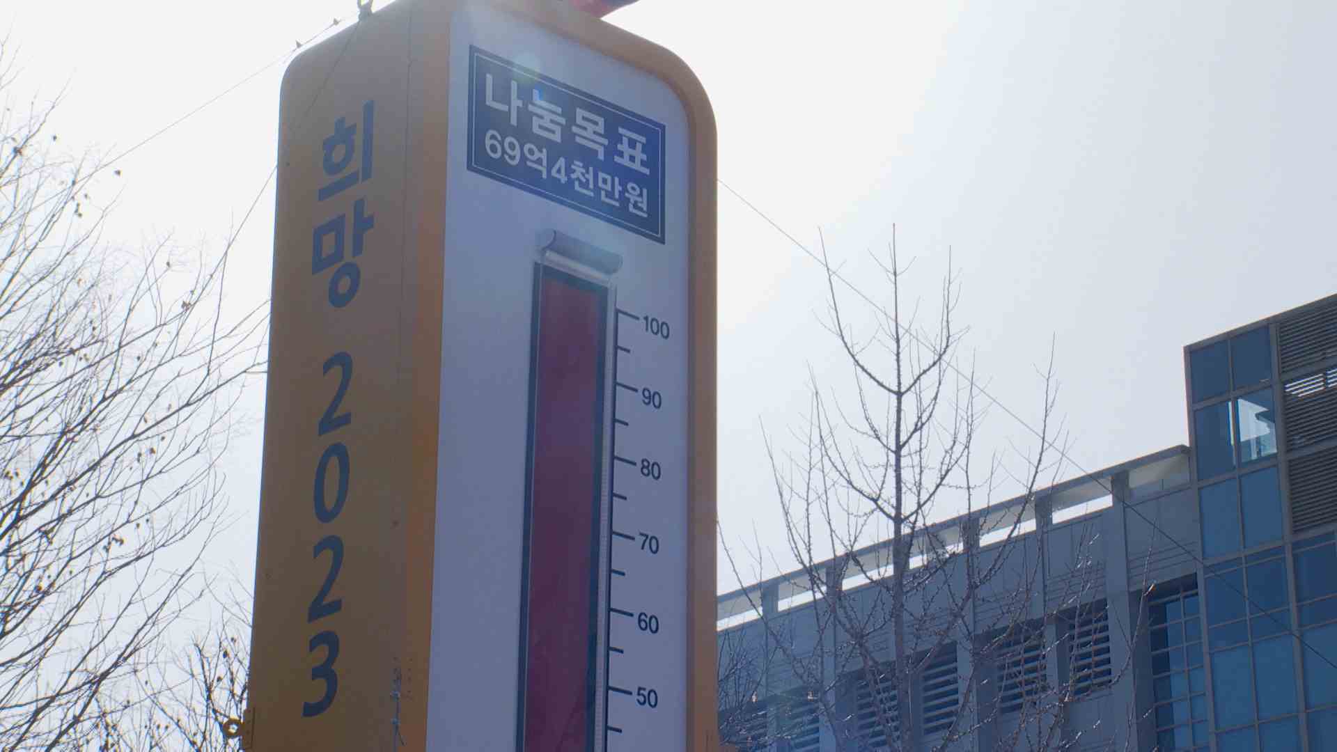 울산 사랑의 온도탑이 목표인 100도를 달성했으나 개인 기부는 지난해 대비 줄어든 것으로 나타났습니다. 울산 사회복지공동모금회에 따르면 나눔 목표액 69억 4천만 원 가운데 기업 기부가 49억 9천만 원으로 70%를 차지했으며 개인 기부는 지난해보다 줄어든 20% 수준에 머물렀습니다. 사회복지공동모금회는 지난해 경기 ...