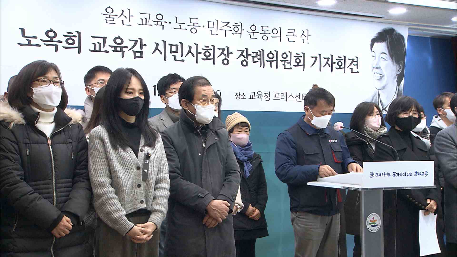 노옥희 교육감 시민사회장 장례위원회는 오늘(1/17) 기자회견을 갖고 고 노옥희 교육감의 뜻을 이어가기 위해 노옥희재단 설립을 추진한다고 밝혔습니다. 또 노 교육감의 49재인 오는 25일 오후 7시 학생교육문화회관에서 시민추모문화제를 갖고 노옥희 교육감의 영면을 기원할 예정입니다. 앞서 내일(1/18)은 양산 솥발산 ...