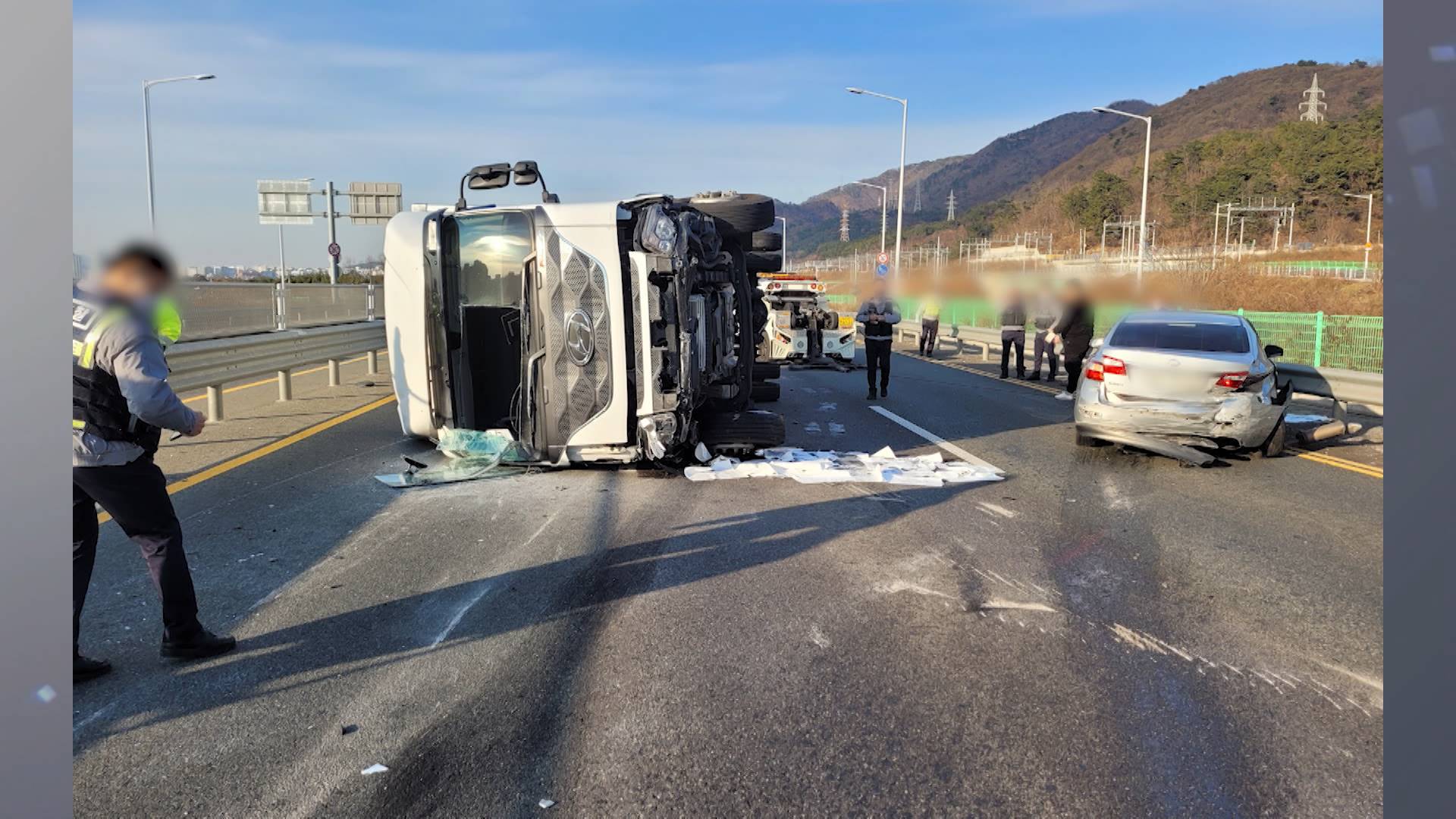 오늘(12/26) 오후 3시 20분 쯤 북구 송정동 오토밸리로를 달리던 승용차와 5톤 화물차가 충돌해 화물차가 옆으로 넘어지는 사고가 났습니다. 이 사고로 60대 화물차 운전자와 30대 승용차 운전자가 부상을 입고 병원으로 옮겨졌으며 사고 수습 여파로 경주방면 오토밸리로가 1시간 가량 정체를 빚었습니다. 경찰은 1차로를 ...