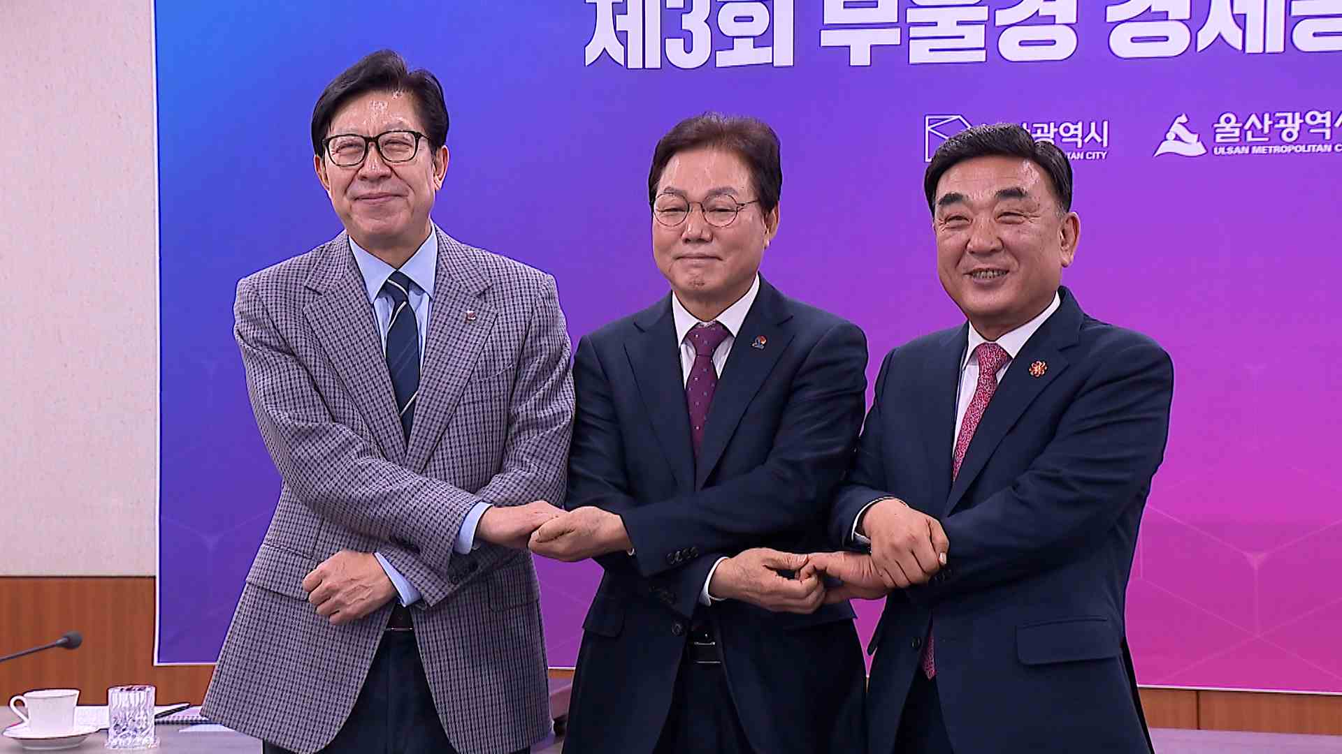 부울경 경제동맹 출범 2년 차를 기념하는 정책협의회가 오늘(4/14) 부산시청에서 열렸습니다. 이 자리에서 3개 시도지사는 새 정부 출범에 따른 부울경 협력 사업을 논의하고 대선 공약에 반영하도록 건의하기로 했습니다. 또 어려운 시기를 극복하고 지방분권의 가치 실현과 지역균형 발전 방안 마련을 요청하는 공동 입장...
