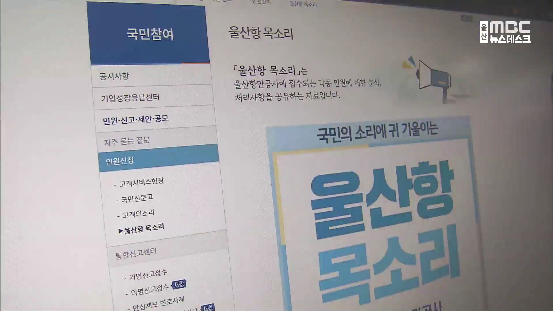 울산항만공사가 올해 해결된 민원 사례를 담은 '울산항 목소리' 1호를 홈페이지에 공개했습니다. 공사는 올해 온산항 조명 밝기 조절과 달포부두 수심확보, 6부두 화장실 설치 등 60건의 민원이 접수됐고 현재 80%가 처리됐다고 밝혔습니다. 공사는 안전신문고, 고객의 소리 등 다양한 창구를 통해 민원을 접수하고 있으며 ...
