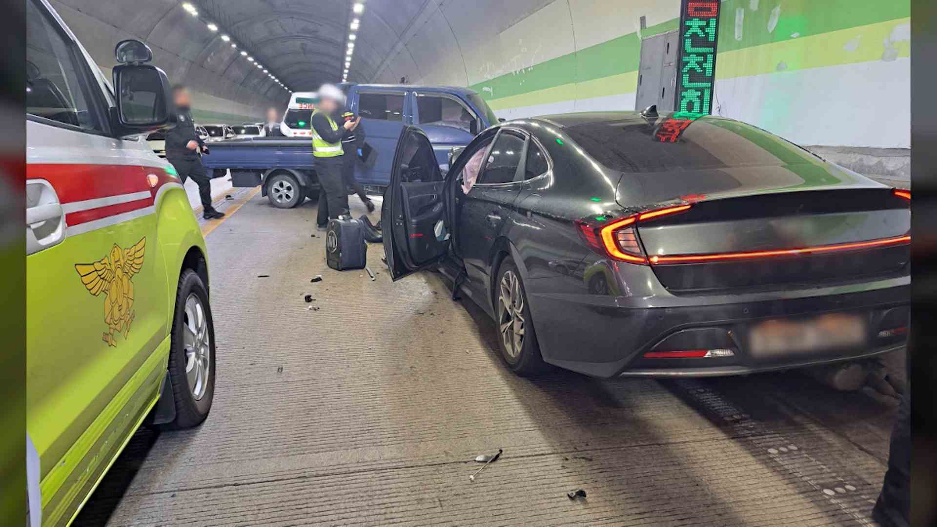 염포산터널에서 트럭·승용차 충돌‥ 4명 부상
