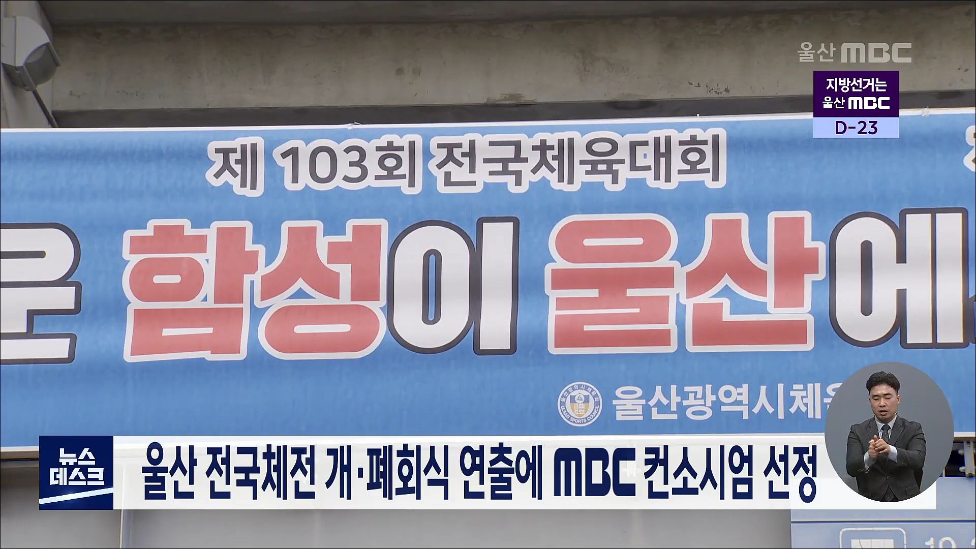 오는 10월 울산에서 열리는 전국체육대회와 전국장애인체육대회의 개·폐회식 연출 대행사로 MBC 컨소시엄이 선정됐습니다. 컨소시엄 대표사인 MBC는 방송과 홍보를, 공동 이행사인 울산MBC와 유니모토는 행사 운영과 부대행사, 연출 등을 담당할 예정입니다. 또 총감독은 2005년 울산에서 열린 전국체전의 연출자문위원 등...