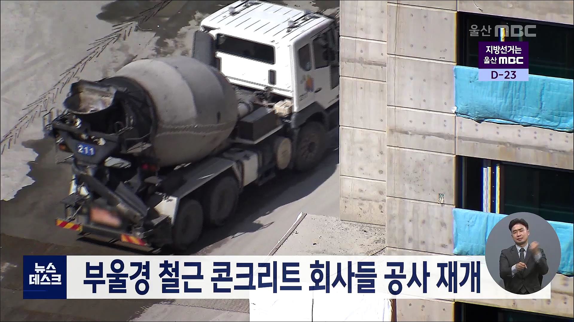 원자잿값 상승으로 인한 공사비 인상을 요구하며 공사 중단을 선언한 부울경 철근 콘크리트 회사들이 나흘 만에 공사를 재개했습니다. 부울경 철근 콘크리트 연합회는 건설사와 협의한 결과 물가인상률 반영 등 충분히 협상 여지가 있어 공사 재개를 결정했다고 설명했습니다.