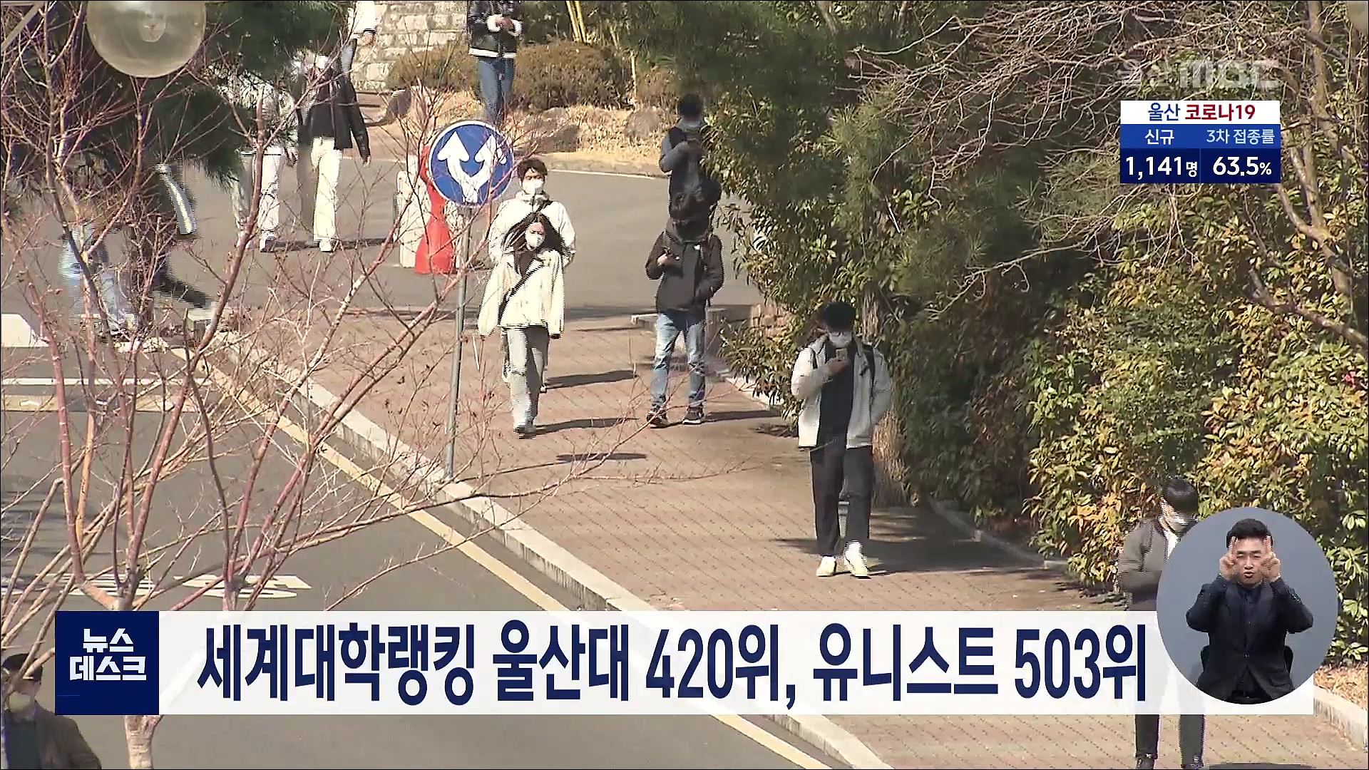 비영리 교육단체인 세계대학랭킹센터가 발표한 2022~2023 세계대학 순위에서 울산대는 420위, 유니스트는 503위로 나타났습니다. 전년도에 비해 울산대는 한 단계 떨어졌고 유니스트는 25등 올랐습니다. 대학 평가는 전 세계 만9천여개 고등교육기관을 대상으로 진행되며 상위 2천개를 가려 발표합니다.//