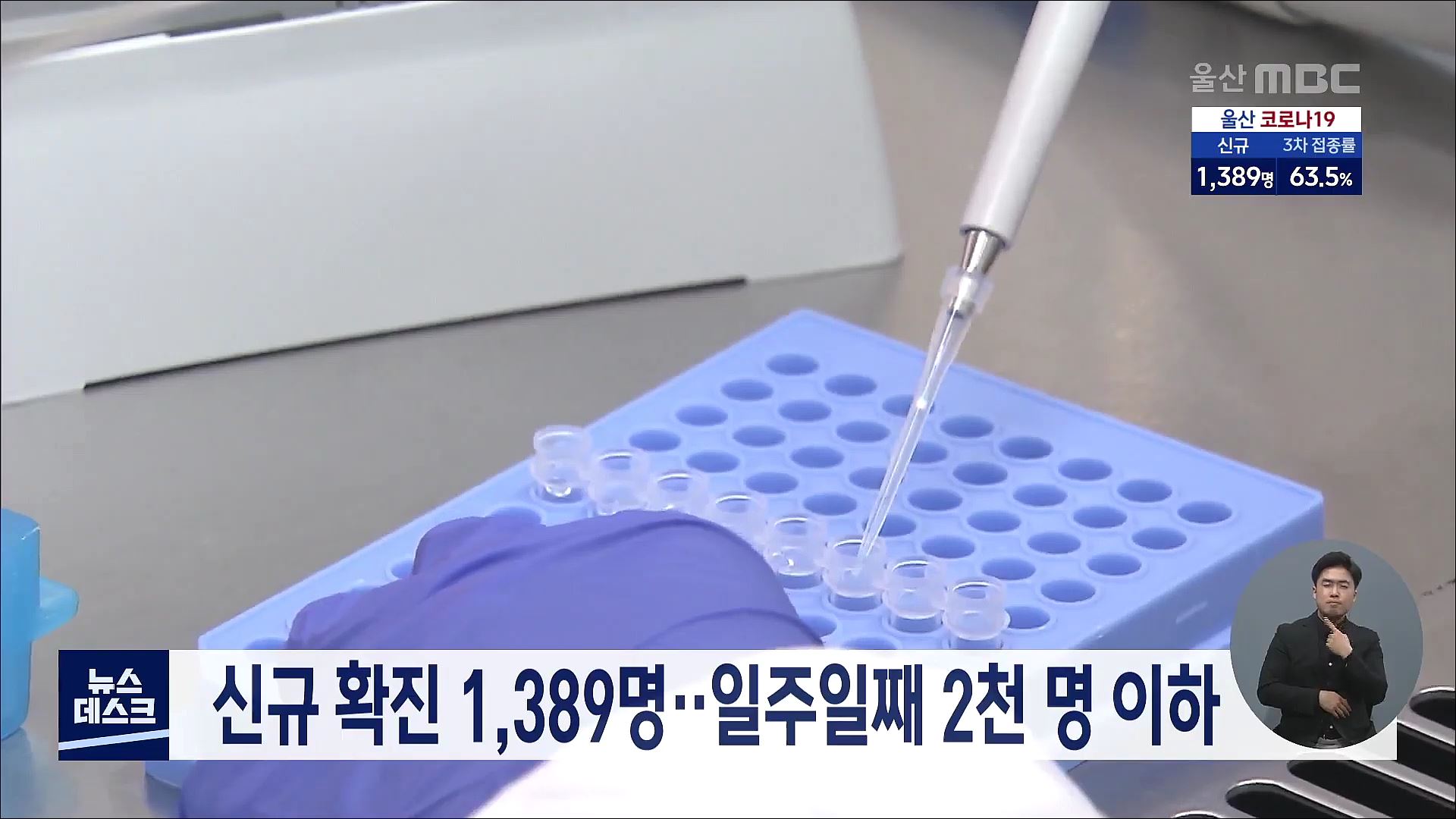 오늘(4/27) 울산에서는 1천389명이 코로나19에 신규 확진되며 7일째 2천 명 이하를 기록하고 있습니다. 한편, 기저질환을 앓던 70대 남성 1명이 사망했습니다. 3차 백신 접종자는 71만여 명으로 접종률은 63%대에 머물고 있습니다.