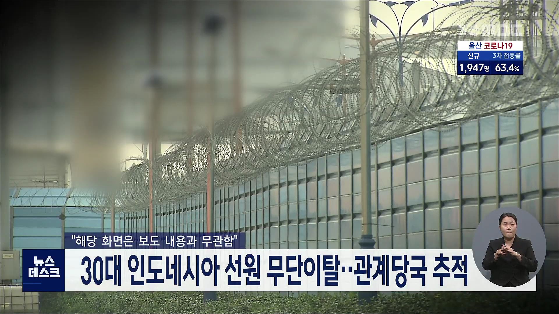 30대 인도네시아 선원 무단이탈.. 관계당국 추적