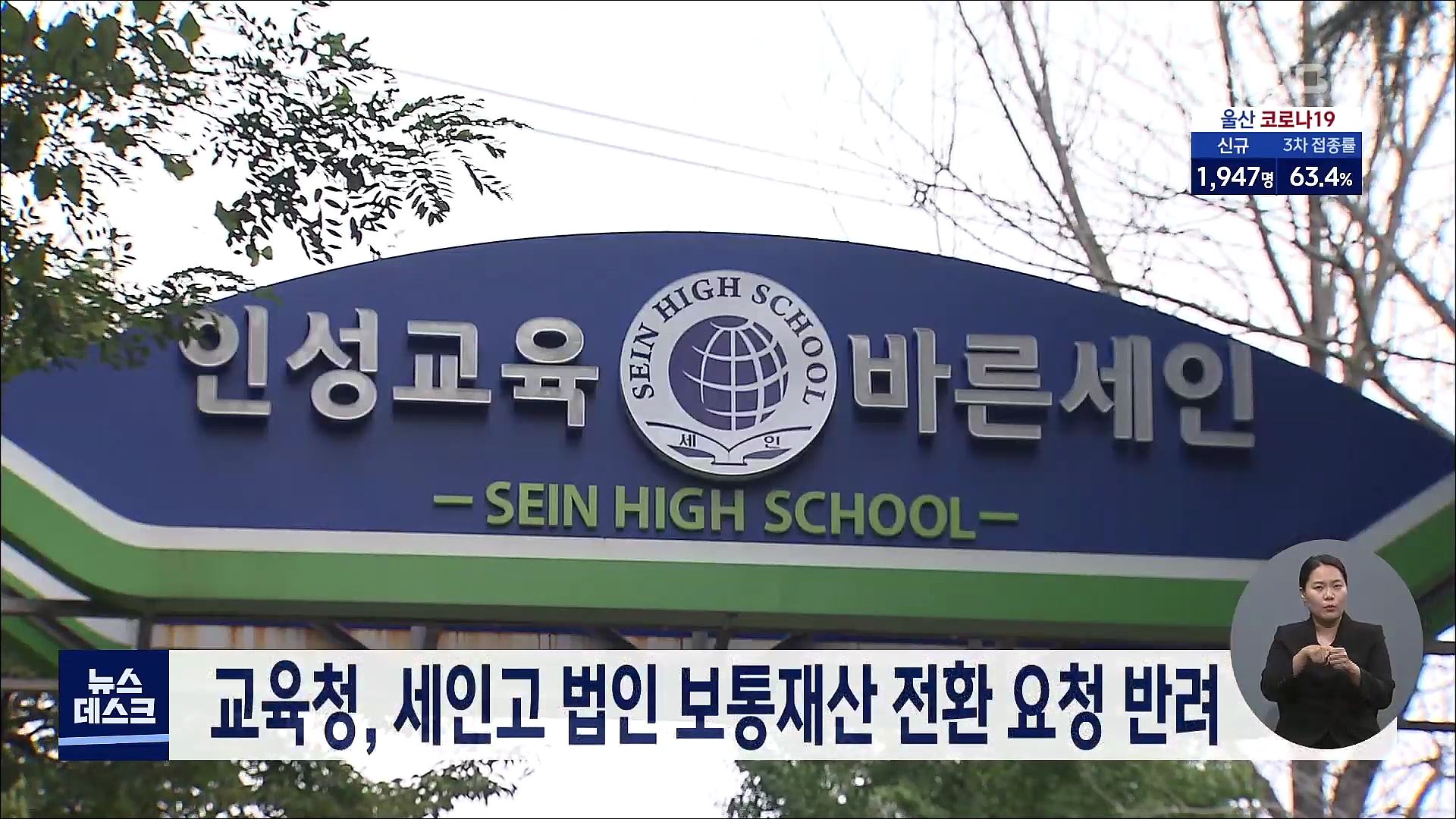 울산시교육청은 폐교된 세인고를 운영했던 울산학원이 110억 원에 이르는 교육용 기본재산을 보통재산으로 전환해 인건비 등에 쓰겠다며 허가를 요청했지만 반려했습니다. 교육청은 교육용 기본재산은 학교 재설립이나 다른 학원과의 합병, 기부 등 교육 목적에 맞게 사용해야 한다고 밝혔습니다.