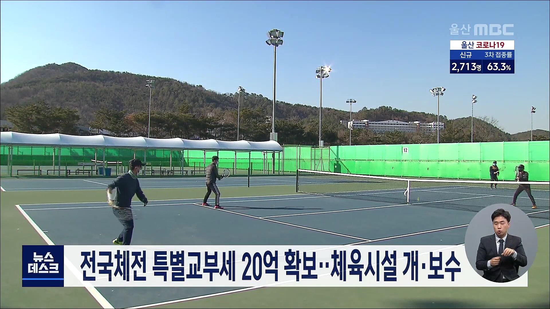울산시가 올해 전국체육대회와 전국장애인체육대회 개최를 위해 특별교부세 20억 원을 받았습니다. 이 돈은 종합운동장 보수 작업과 문수테니스장과 문수수영장 관람석 교체, 동구 서부시민구장과 야구장 시설 확보 등에 사용될 예정입니다. 이들 체육시설은 전국체전에 활용된 뒤 일반에 개방될 예정입니다.